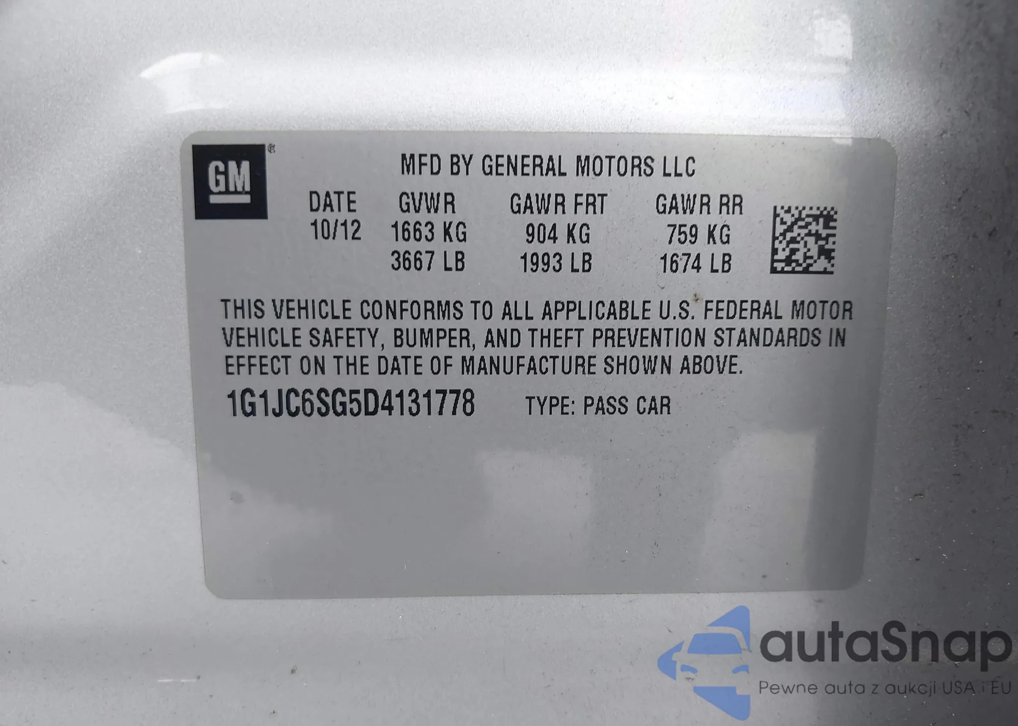 • VIN 1G1JC6SG5D4131778