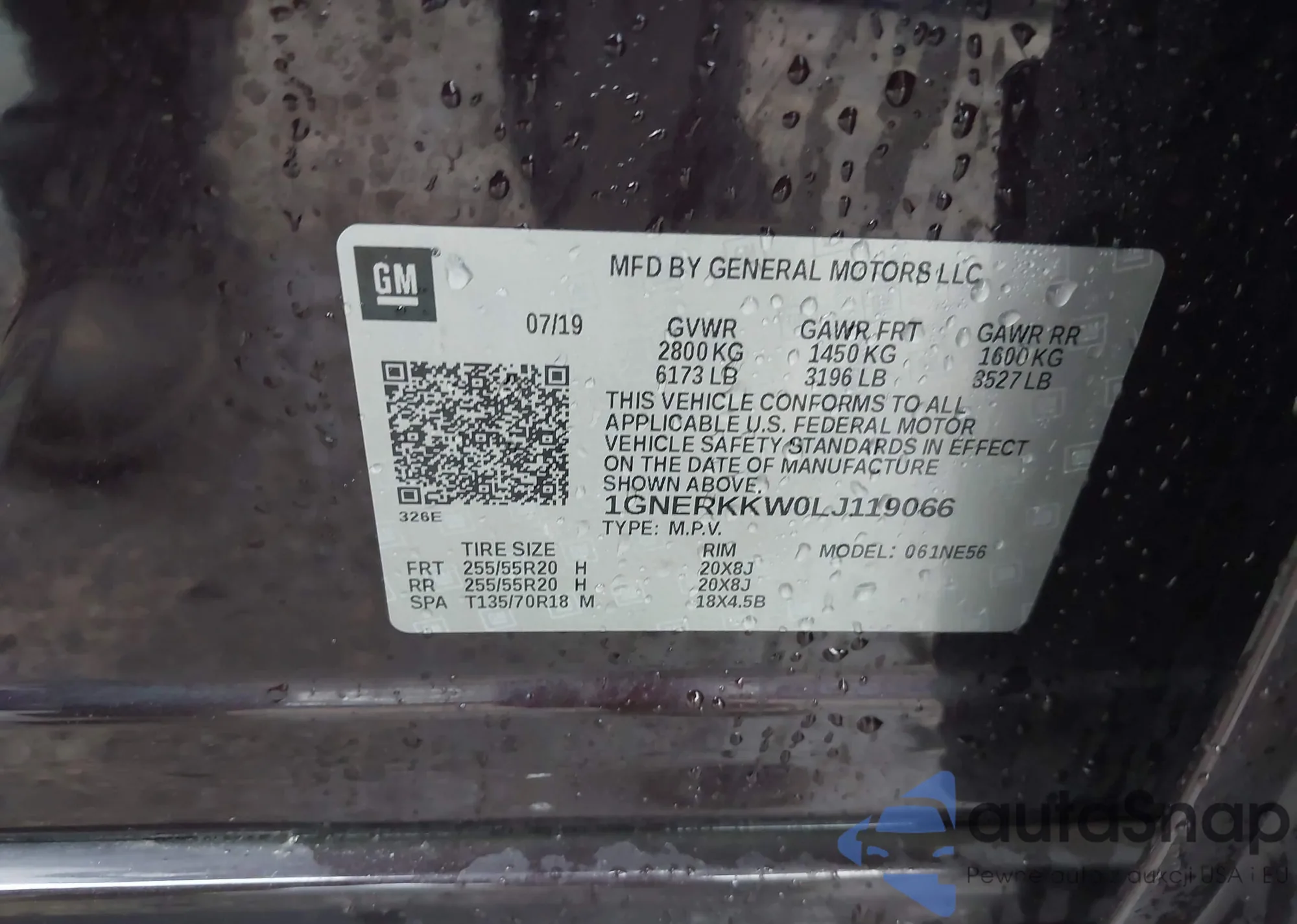 LOT: 42938652 VIN: 1GNERKKW0LJ119066