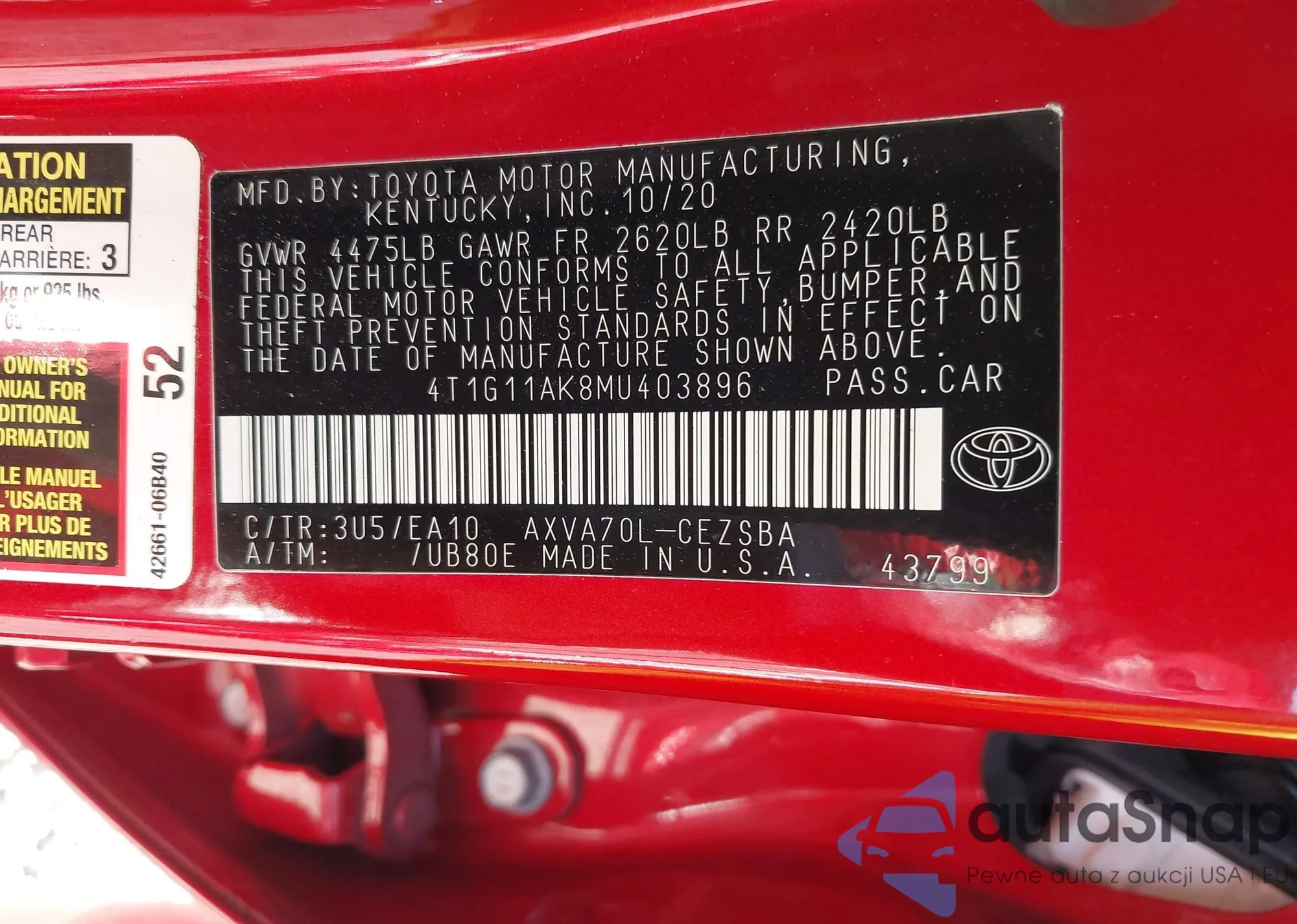 LOT: 42983800 VIN: 4T1G11AK8MU403896