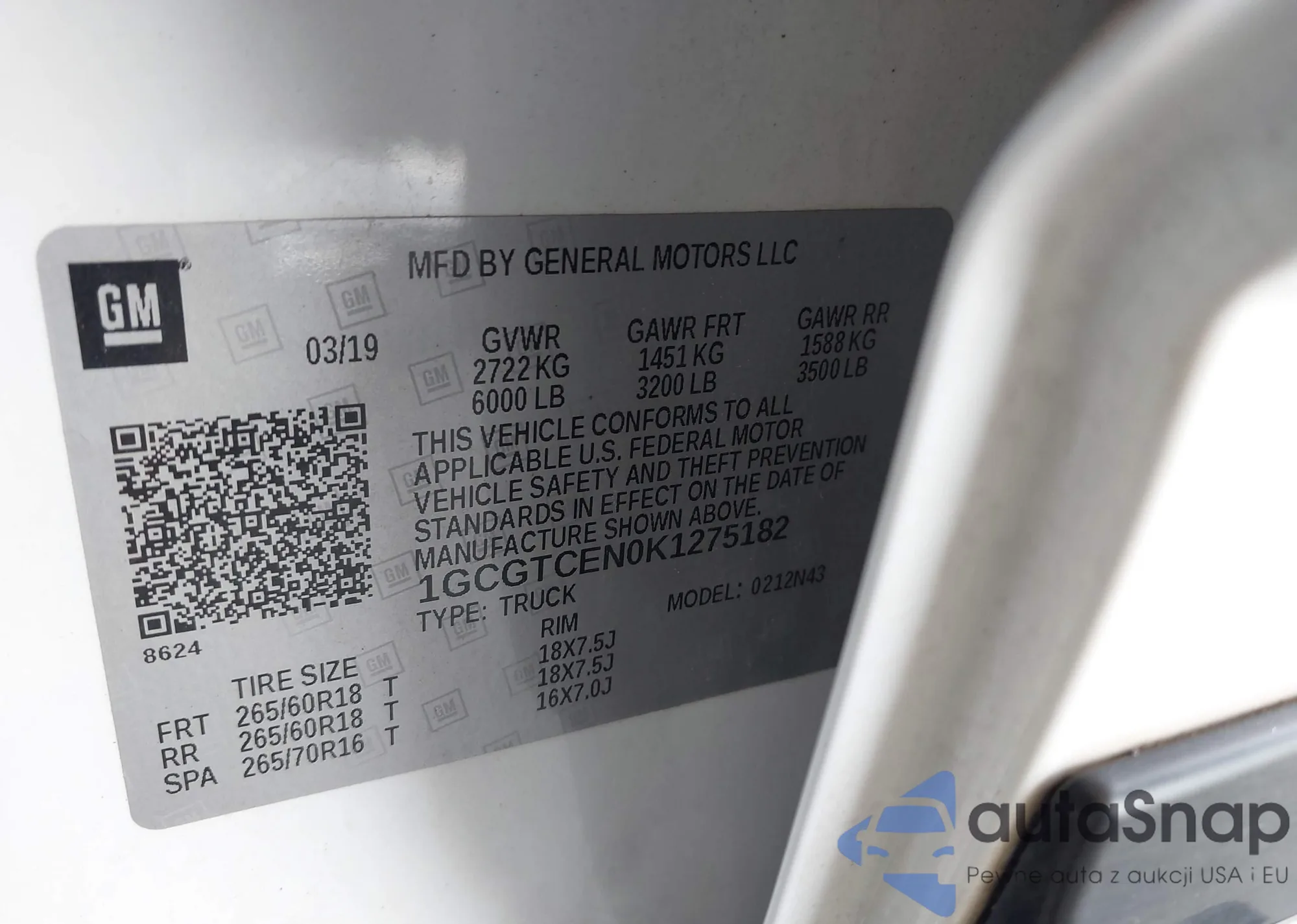 LOT: 43240132 VIN: 1GCGTCEN0K1275182