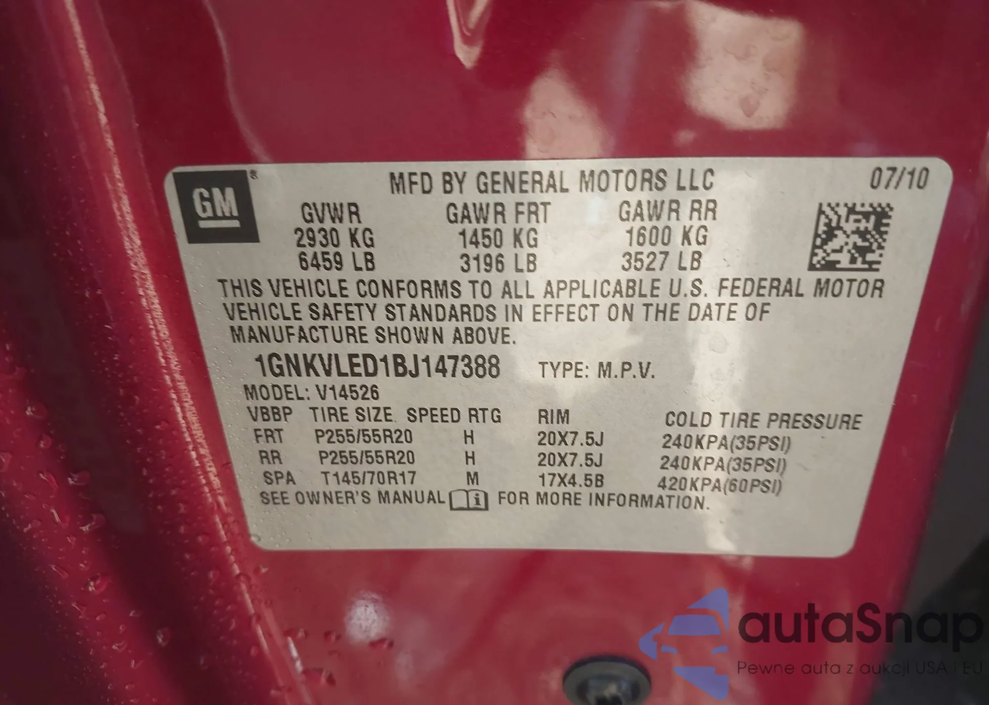 • VIN 1GNKVLED1BJ147388