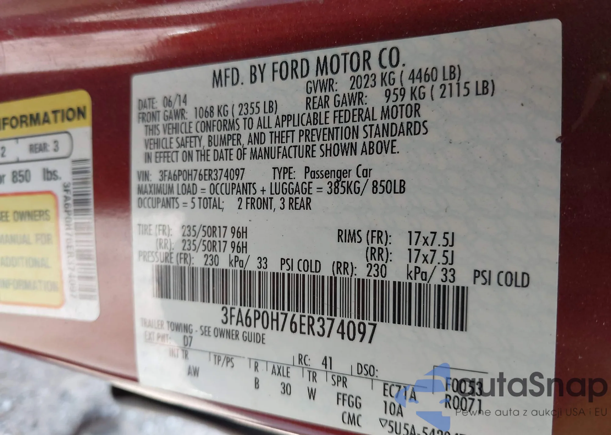 • VIN 3FA6P0H76ER374097