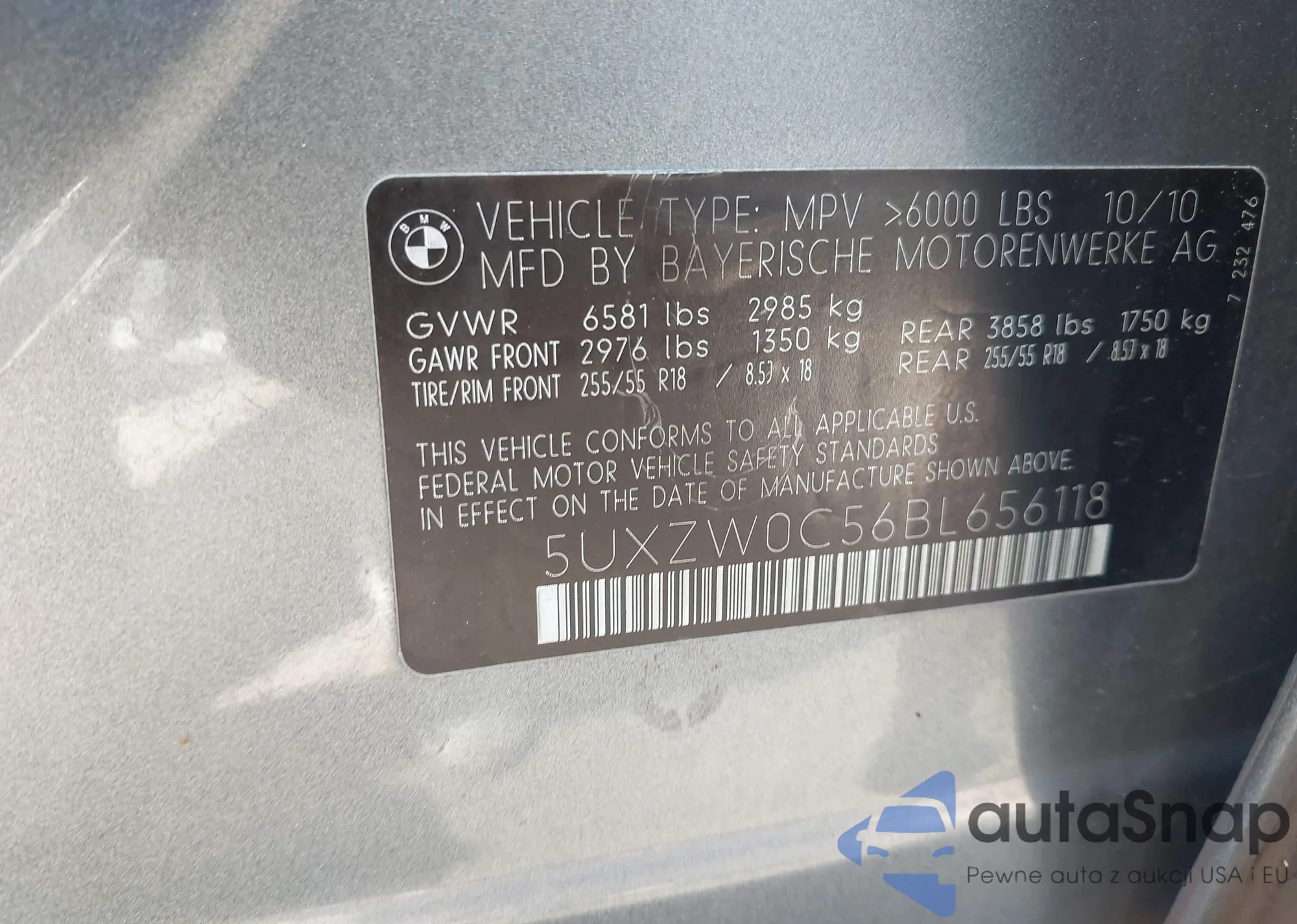 LOT: 42949629 VIN: 5UXZW0C56BL656118