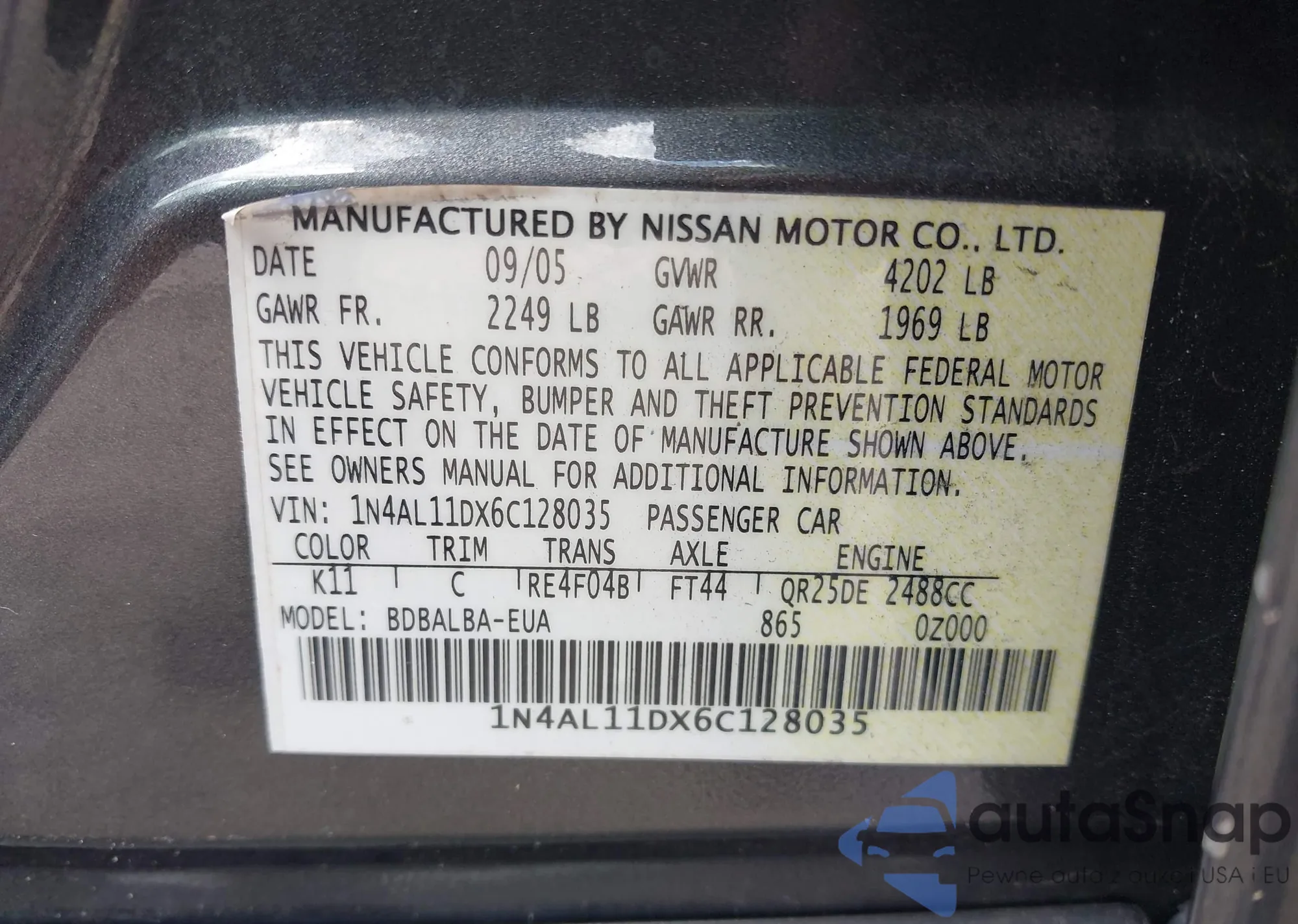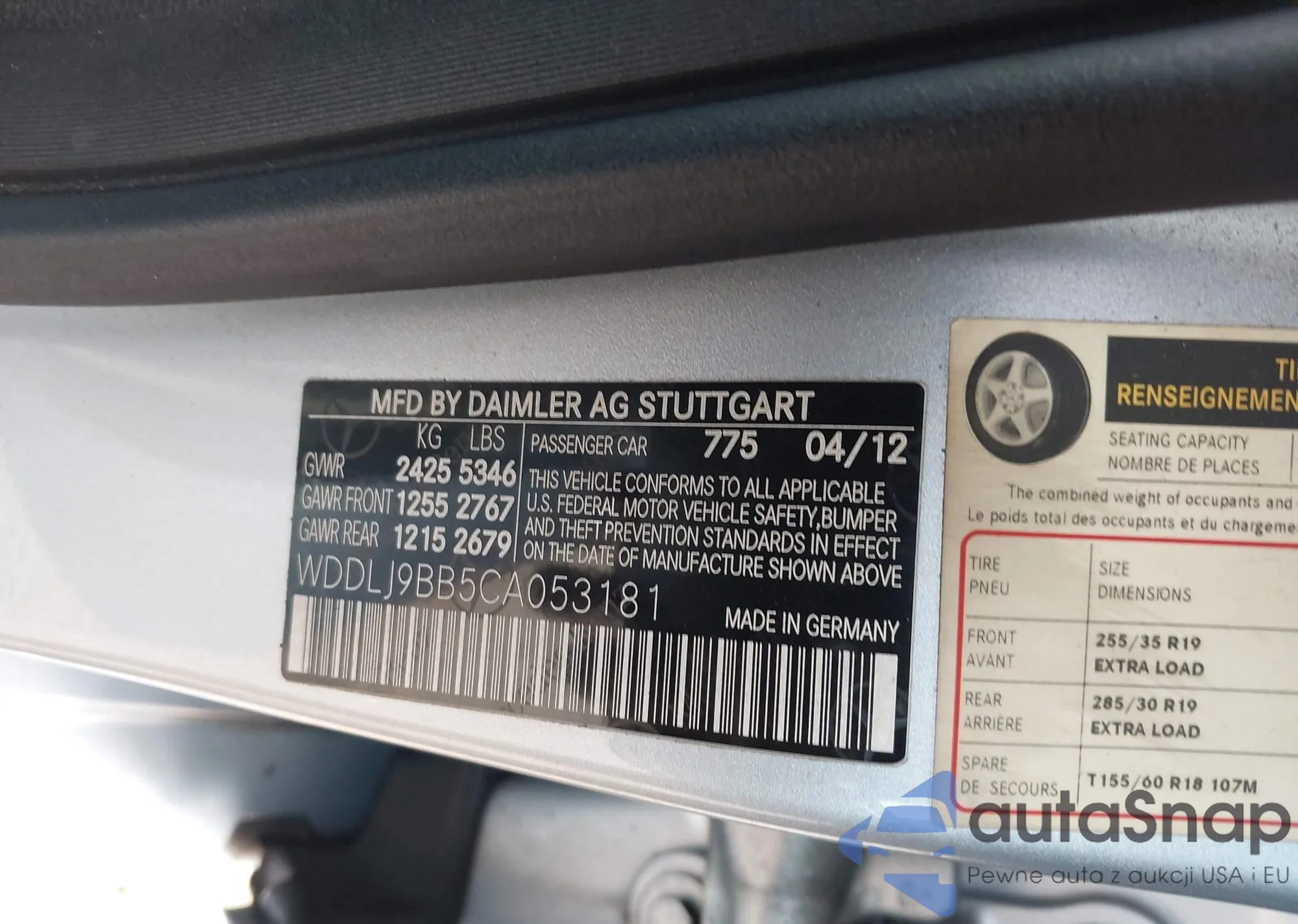 • VIN WDDLJ9BB5CA053181