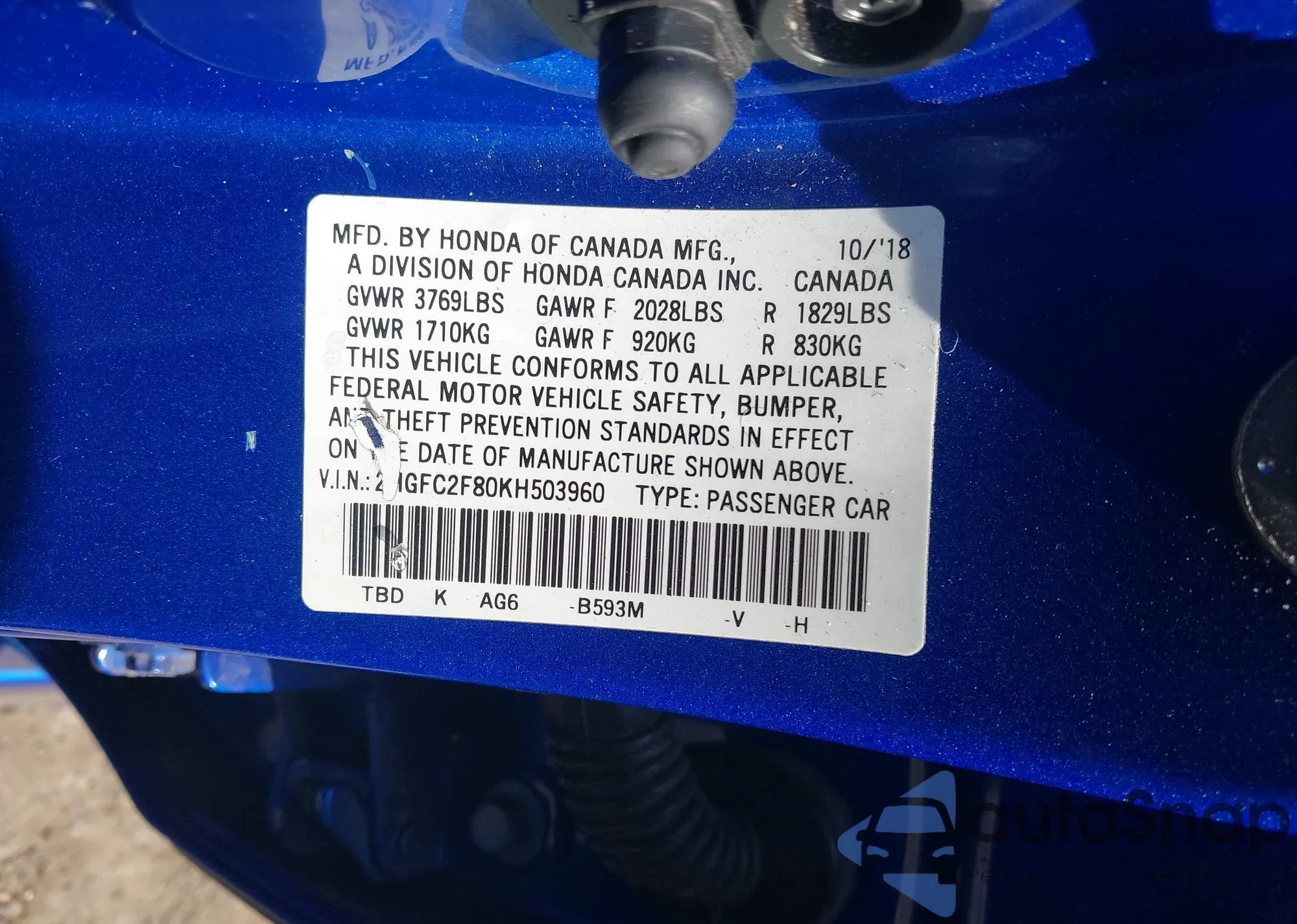 LOT: 42712678 VIN: W04WH3N50KG335921