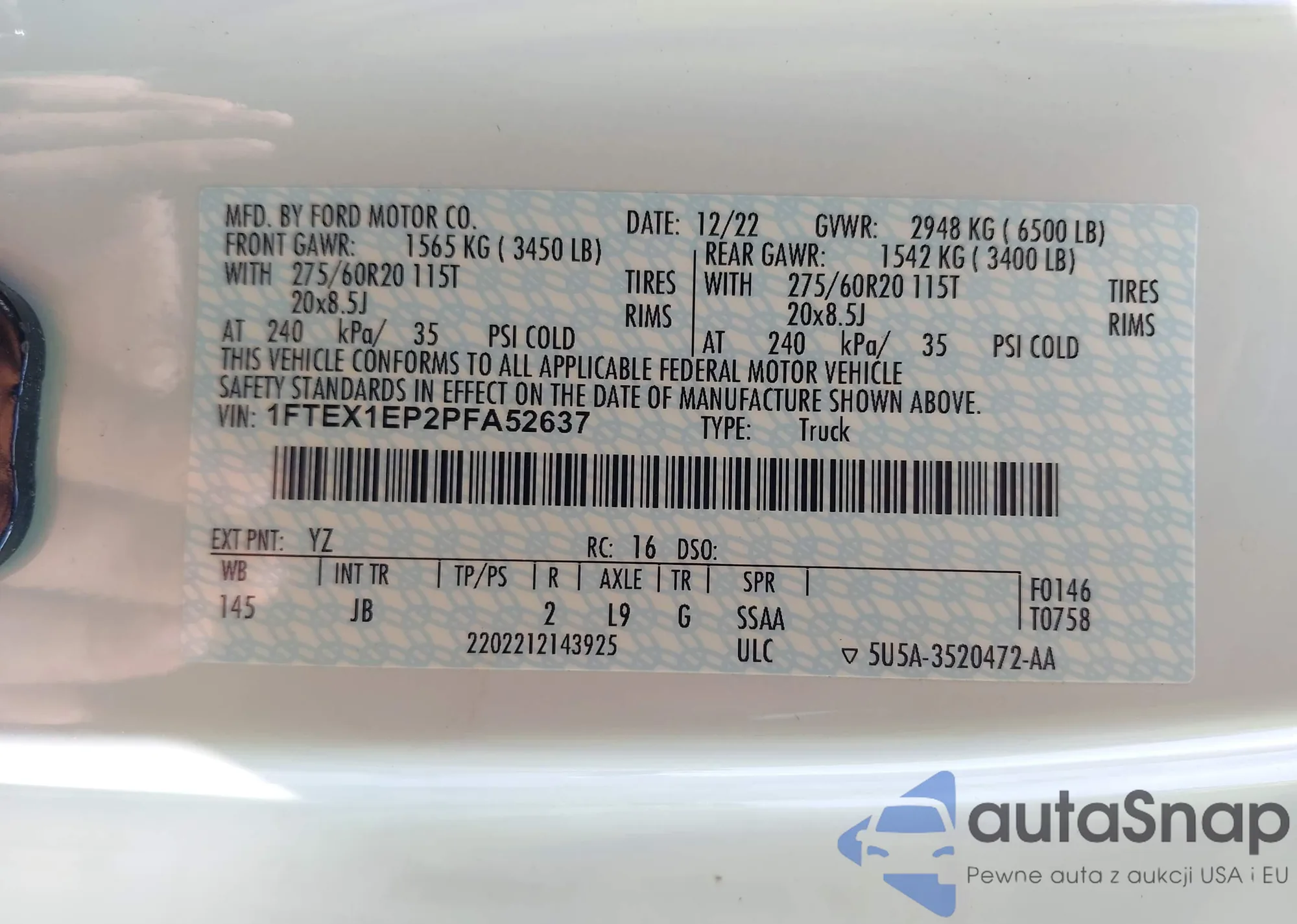 LOT: 43366918 VIN: WDDLJ9BB5CA053181