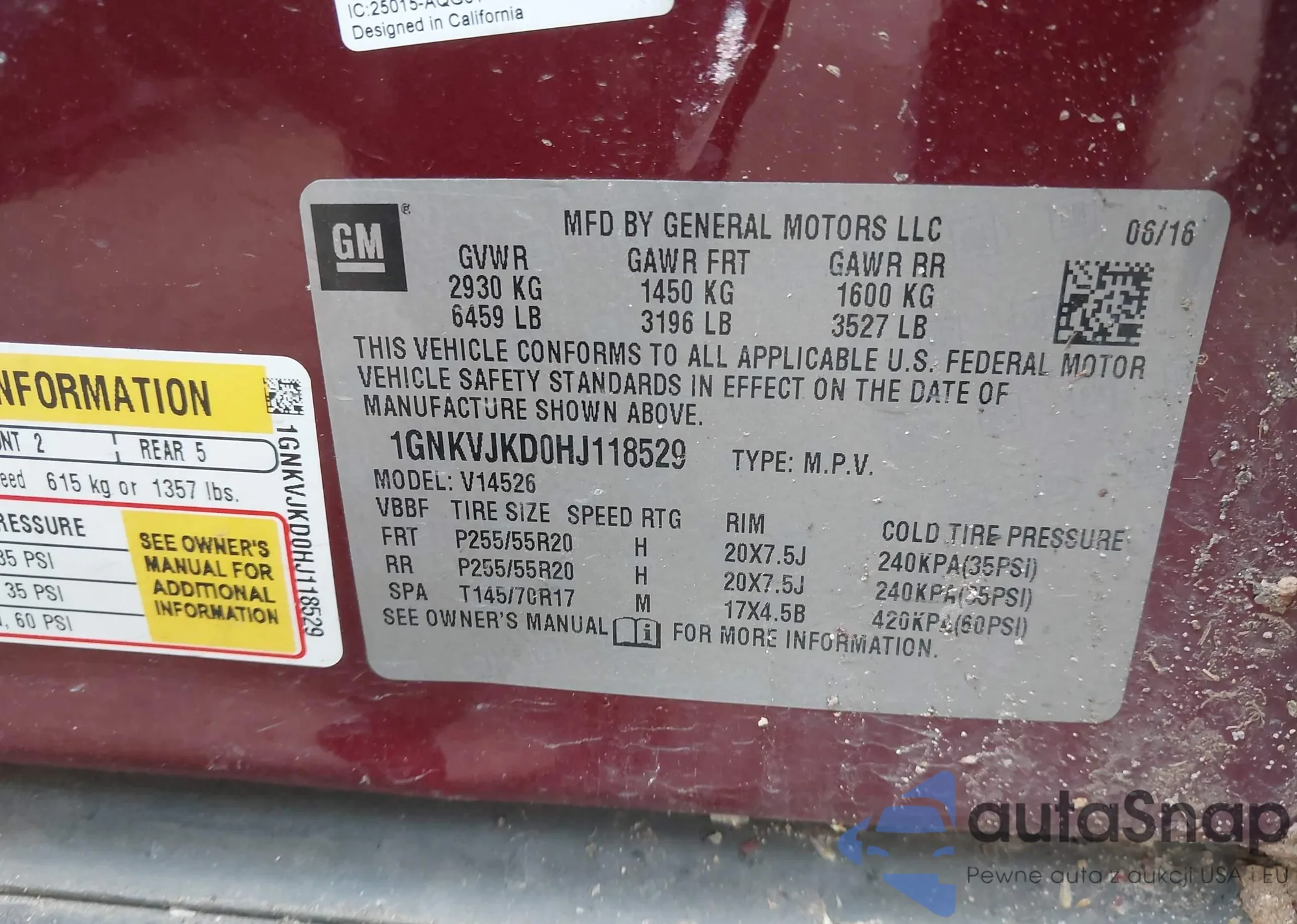 LOT: 42215765 VIN: 1GNKVJKD0HJ118529