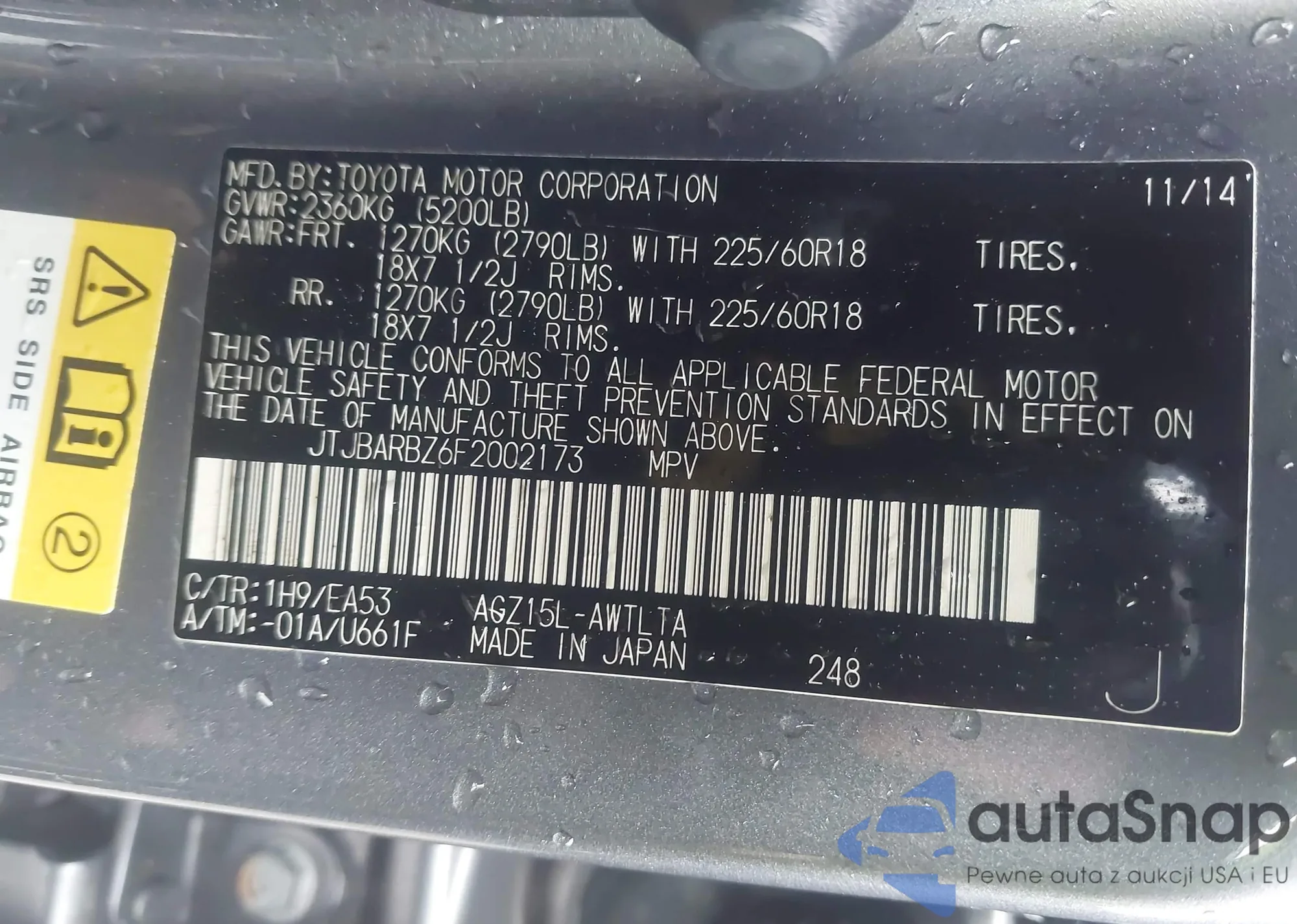 • VIN JTJBARBZ6F2002173