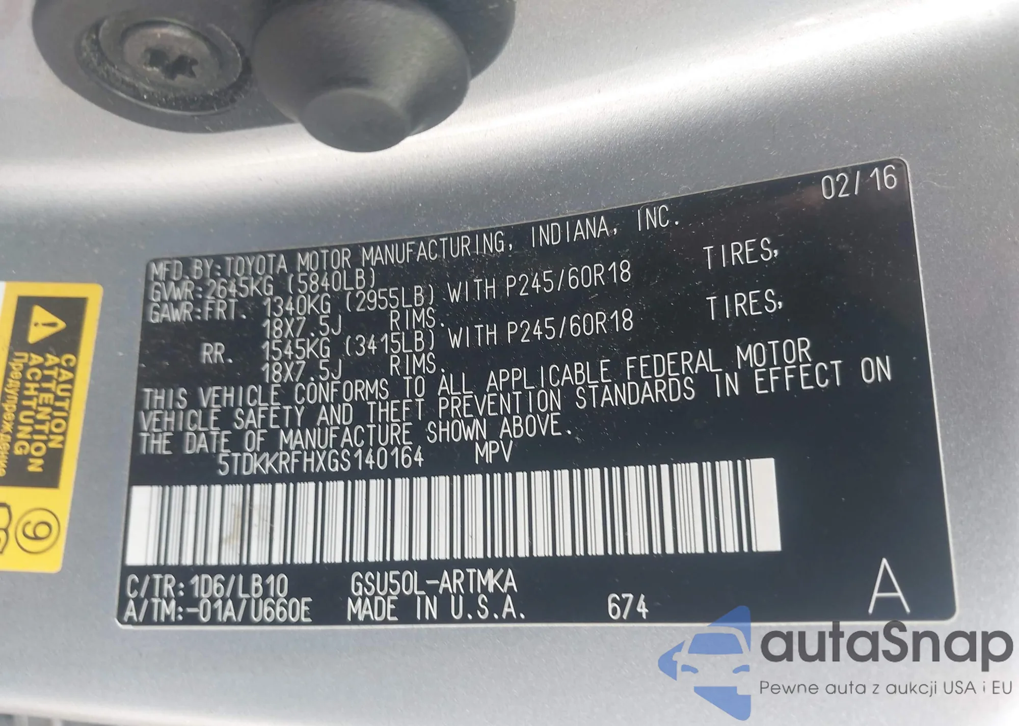 LOT: 42616062 VIN: 5TDKKRFHXGS140164