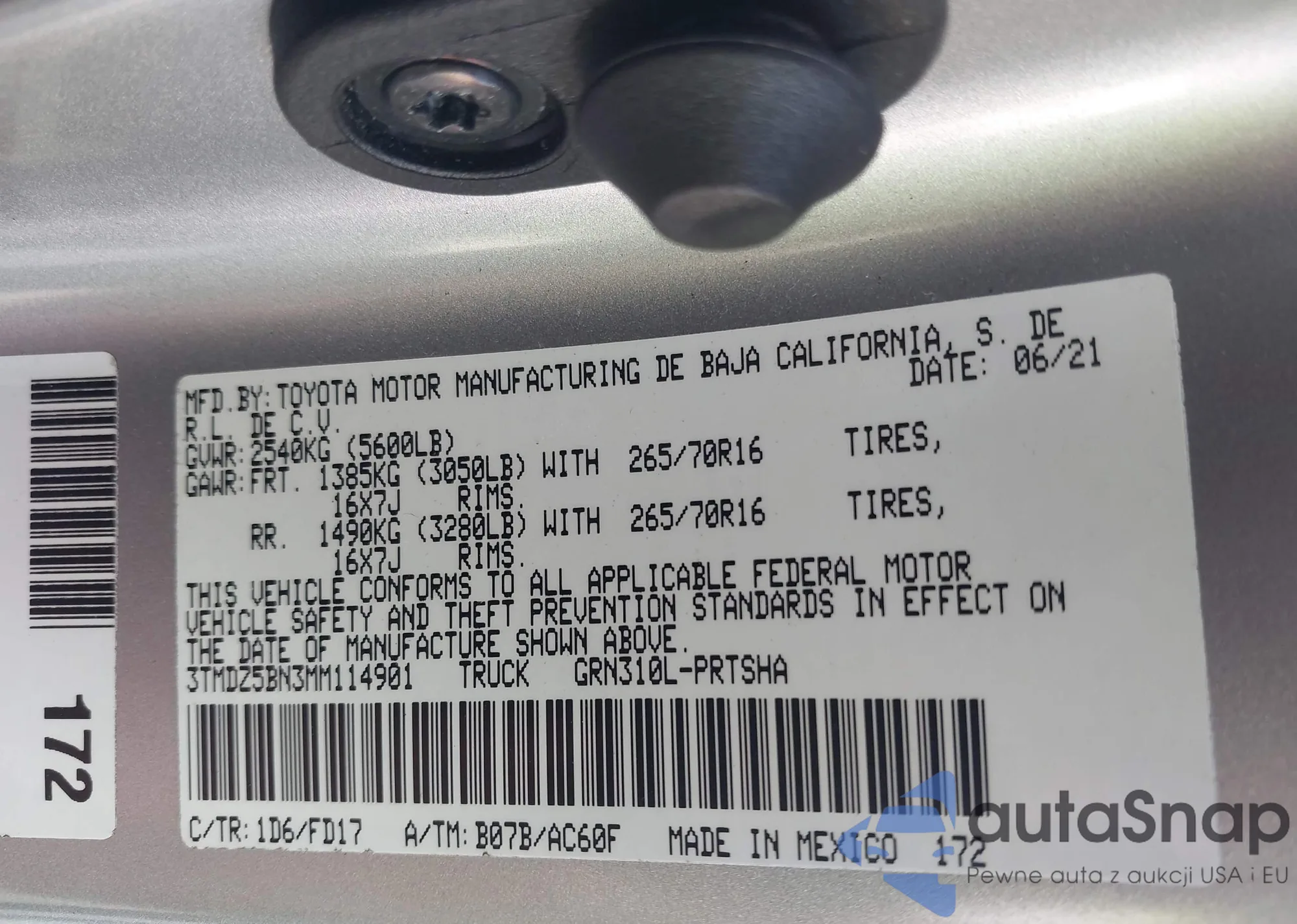 • VIN 3TMDZ5BN3MM114901