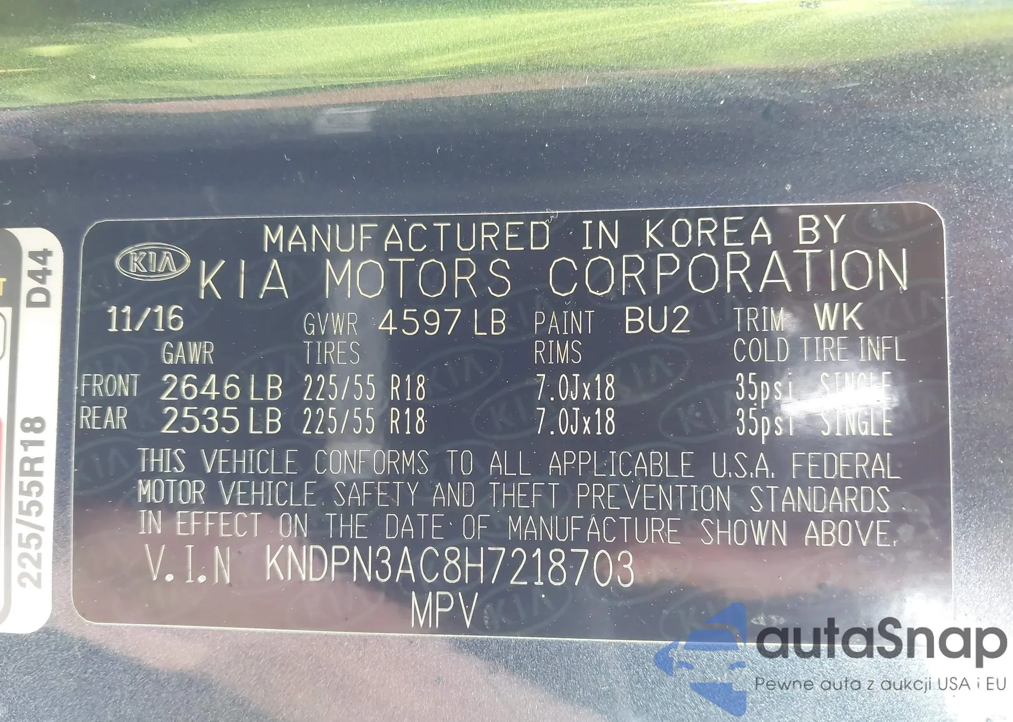 • VIN KNDPN3AC8H7218703