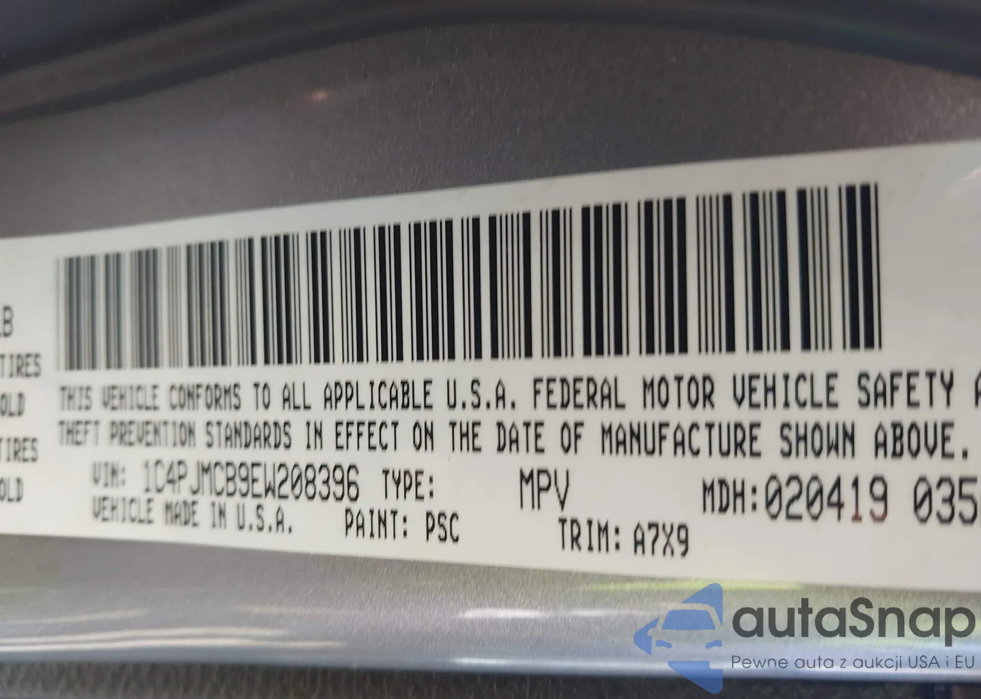 • VIN 1C4PJMCB9EW208396
