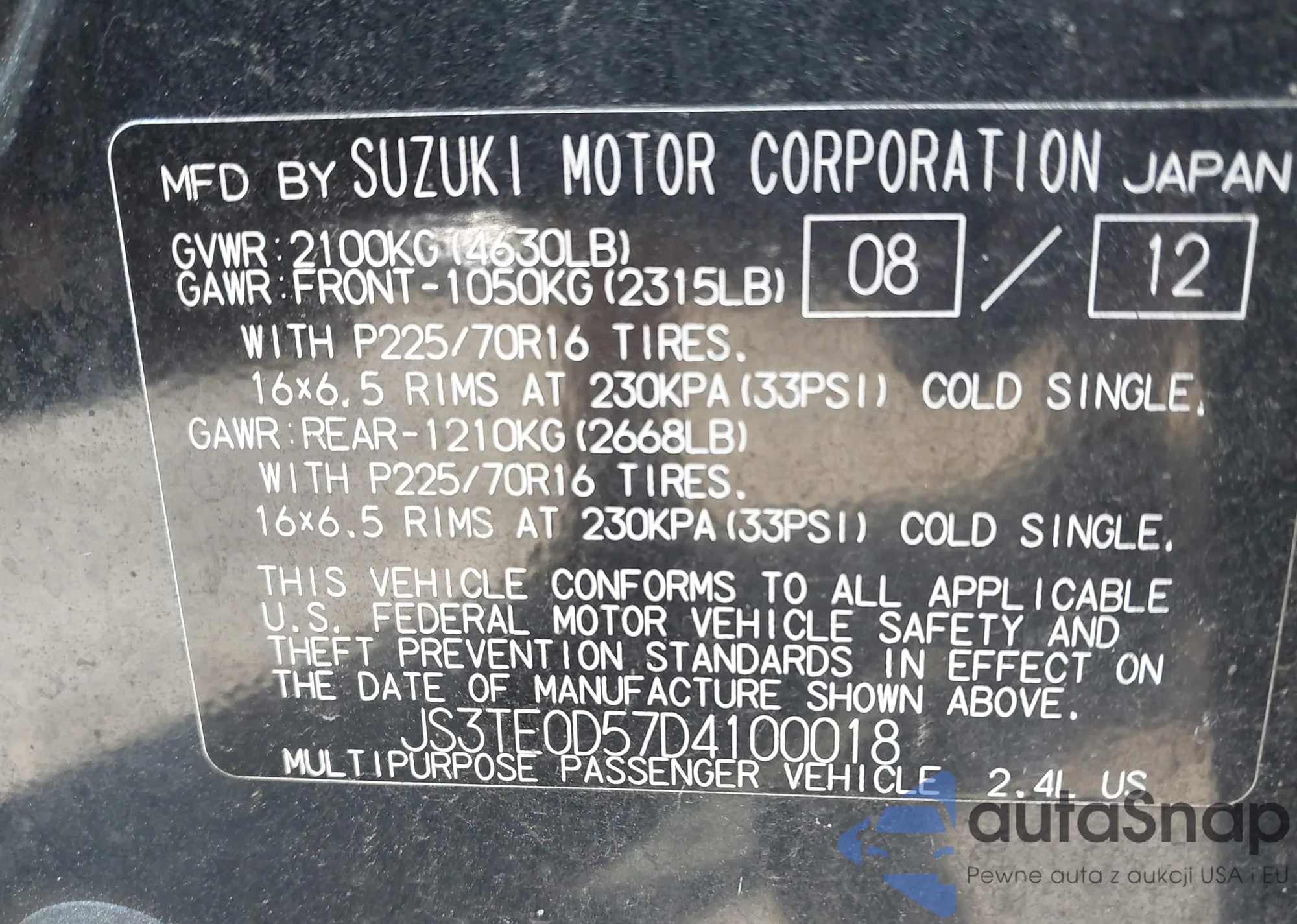 • VIN JS3TE0D57D4100018
