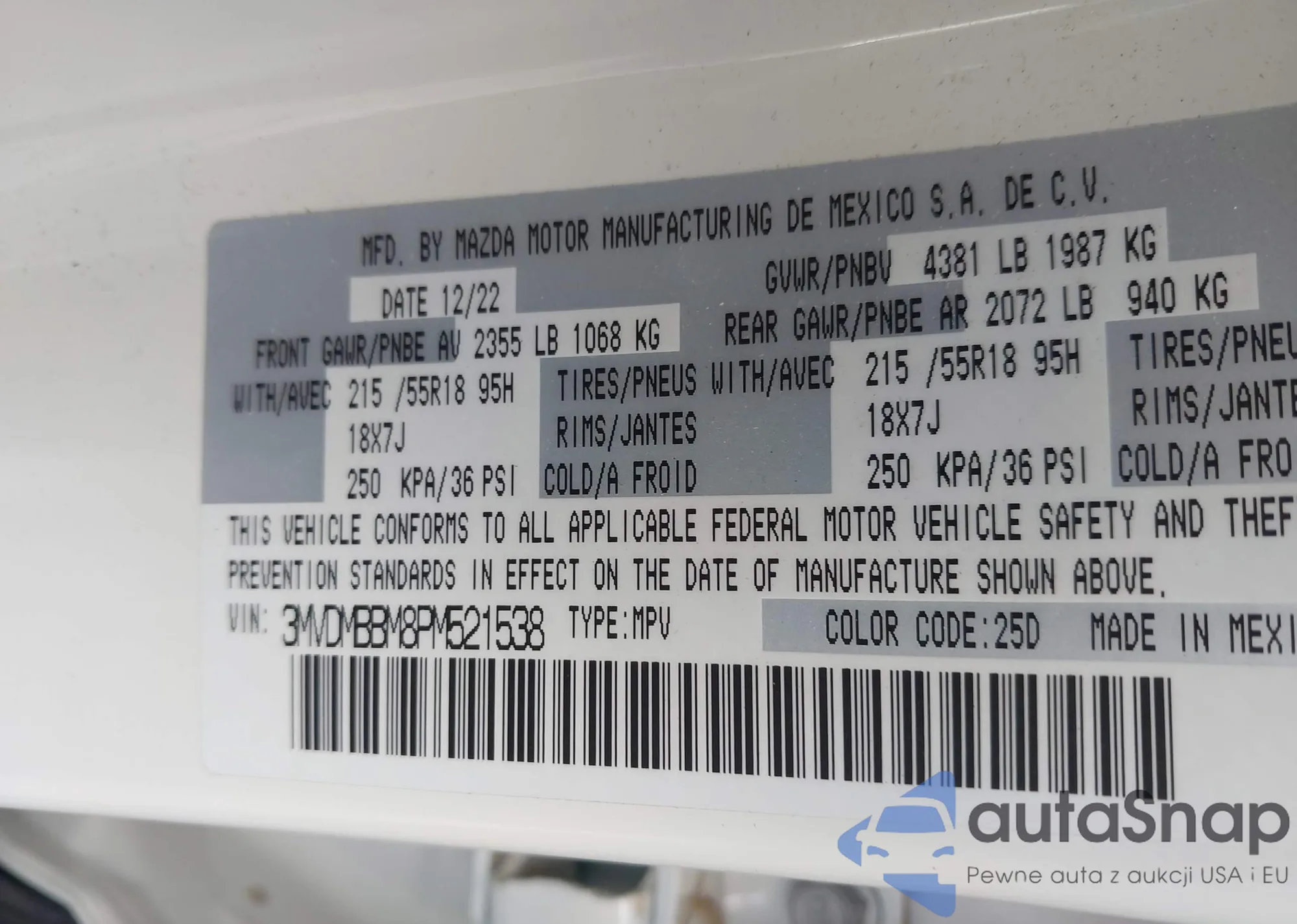 • VIN 3MVDMBBM8PM521538