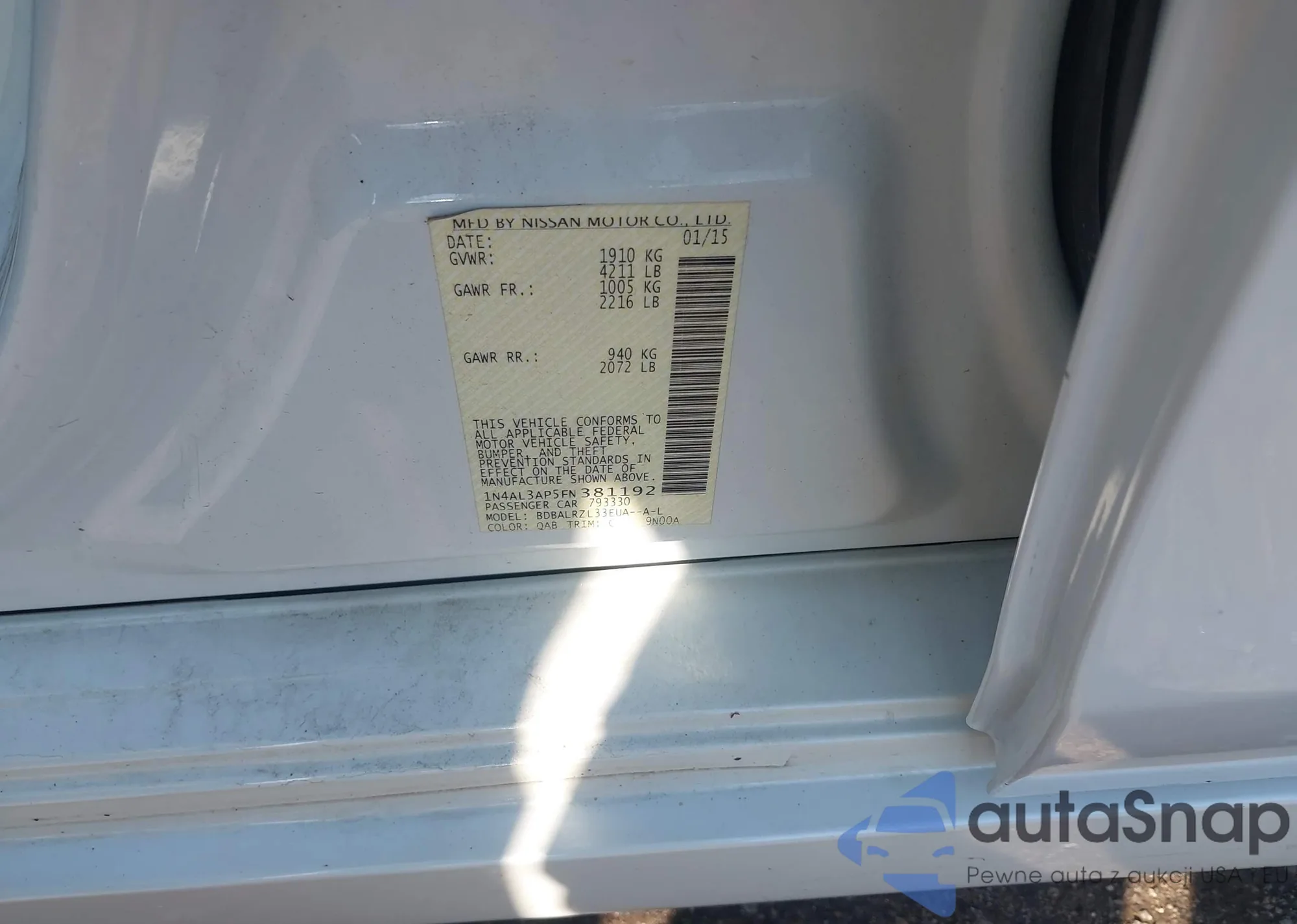 • VIN 1N4AL3AP5FN381192