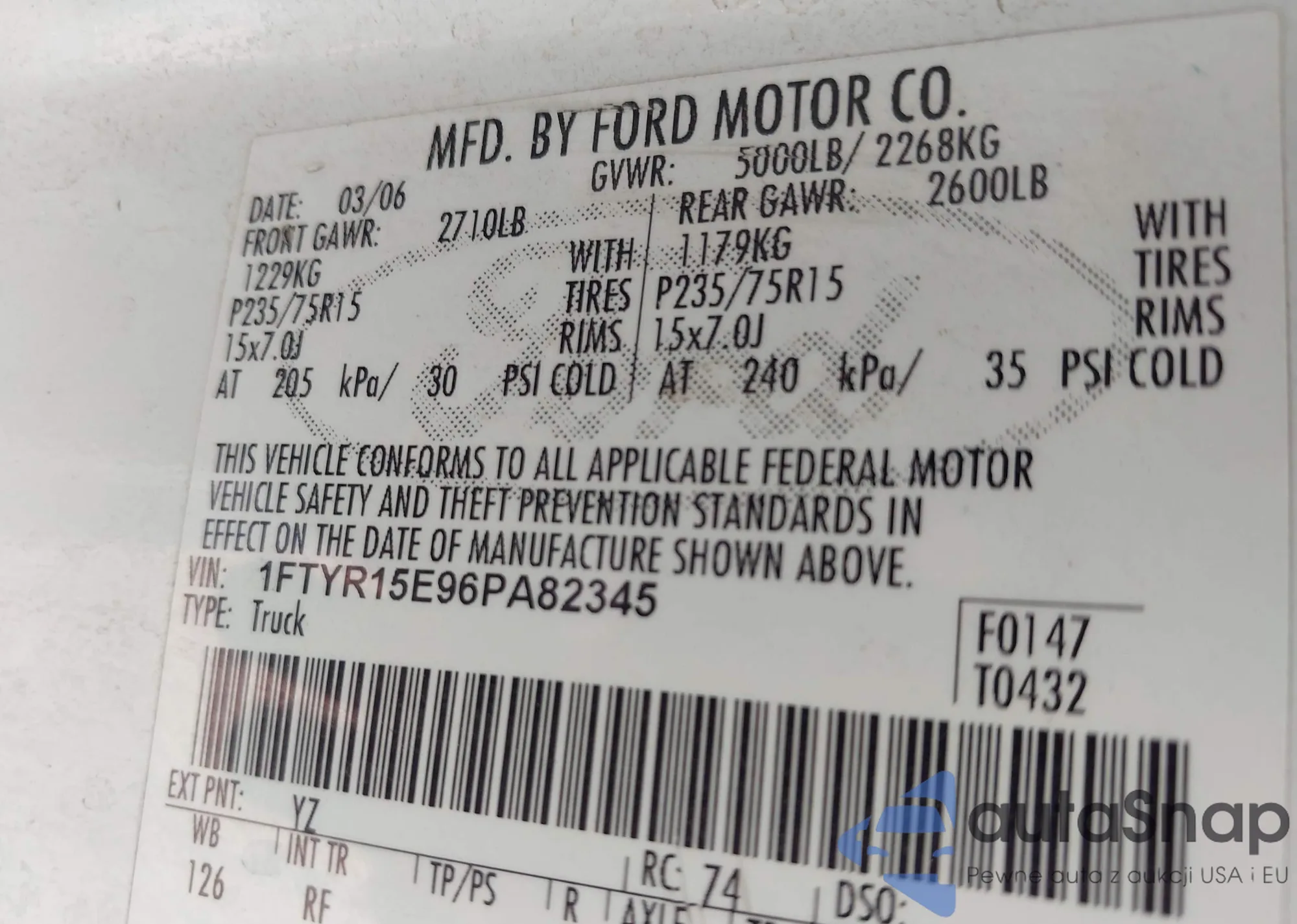 • VIN 1FTYR15E96PA82345