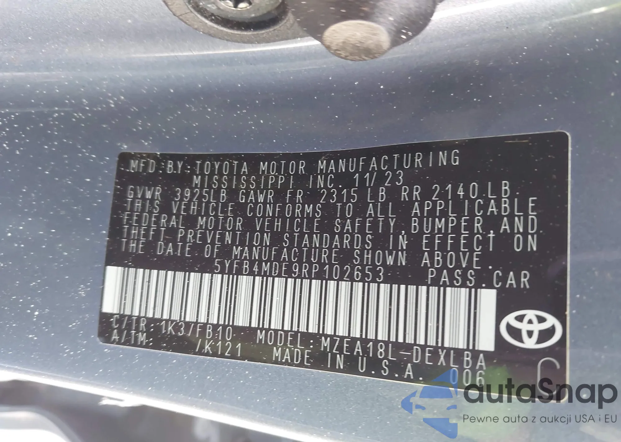 • VIN 5YFB4MDE9RP102653