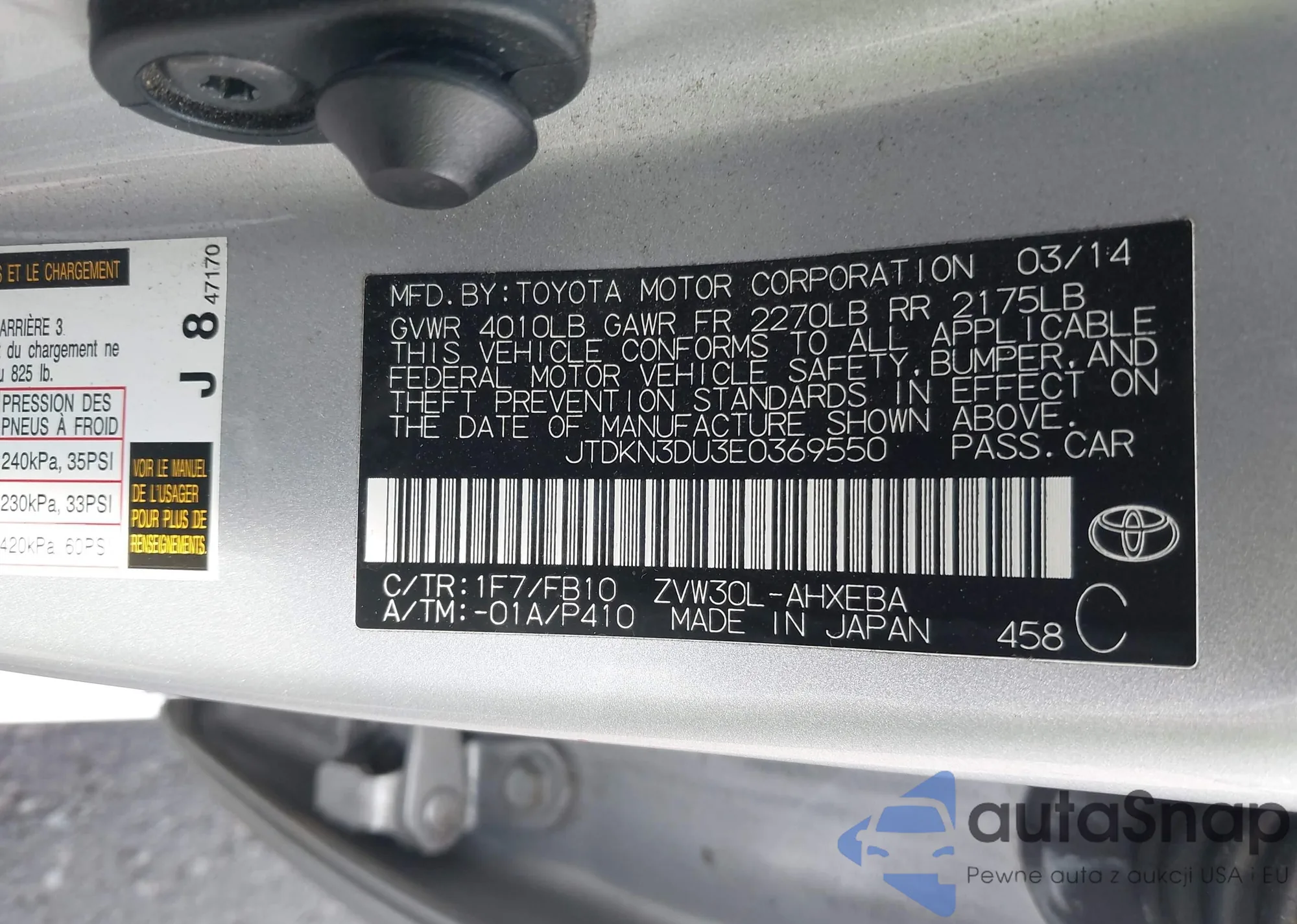 LOT: 43304140 VIN: JTDKN3DU3E0369550