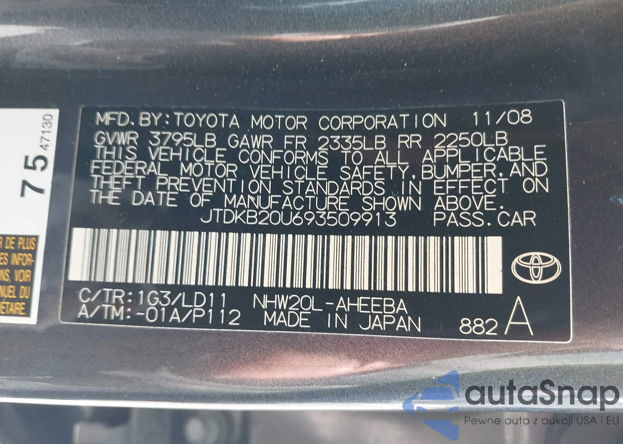 • VIN JTDKB20U693509913