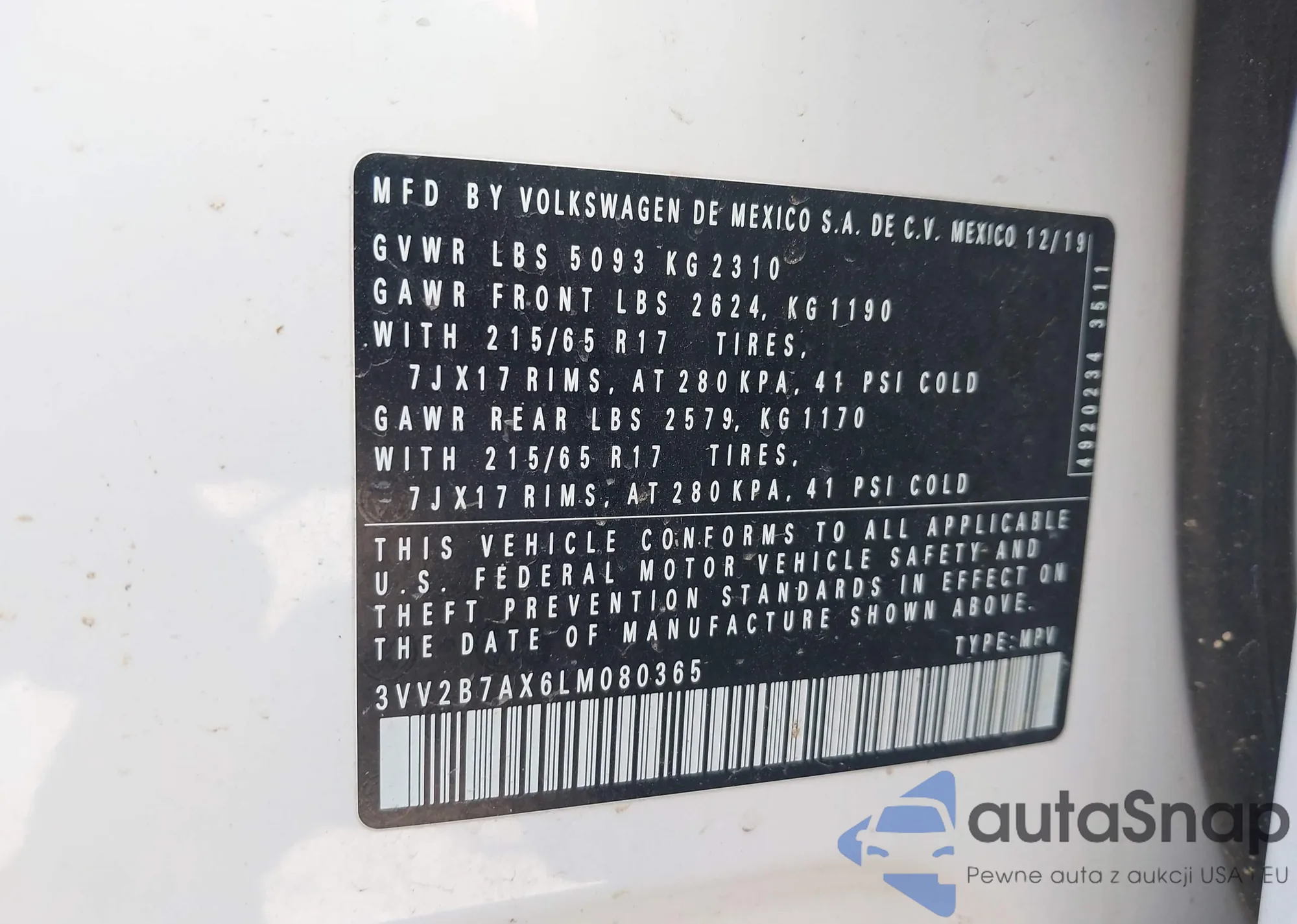 • VIN 3VV2B7AX6LM080365