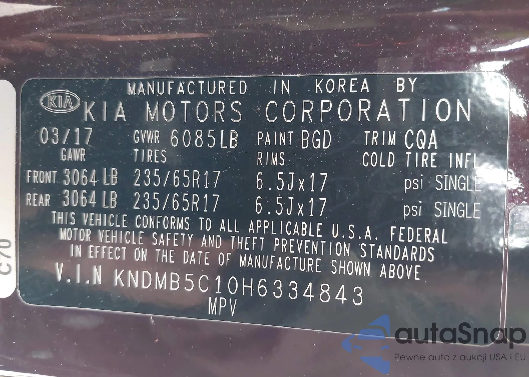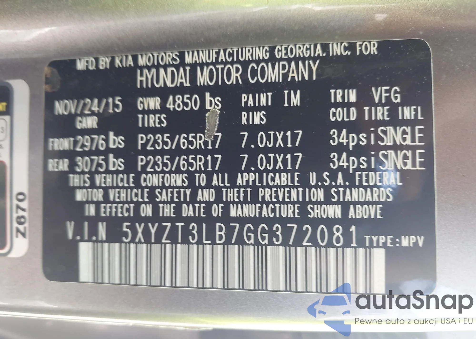 • VIN 5XYZT3LB7GG372081
