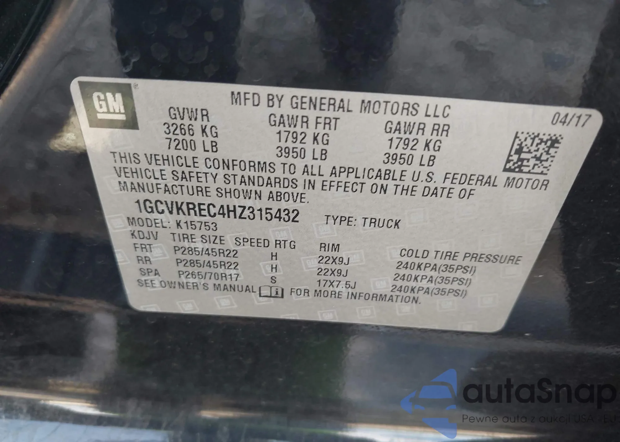 • VIN 1GCVKREC4HZ315432