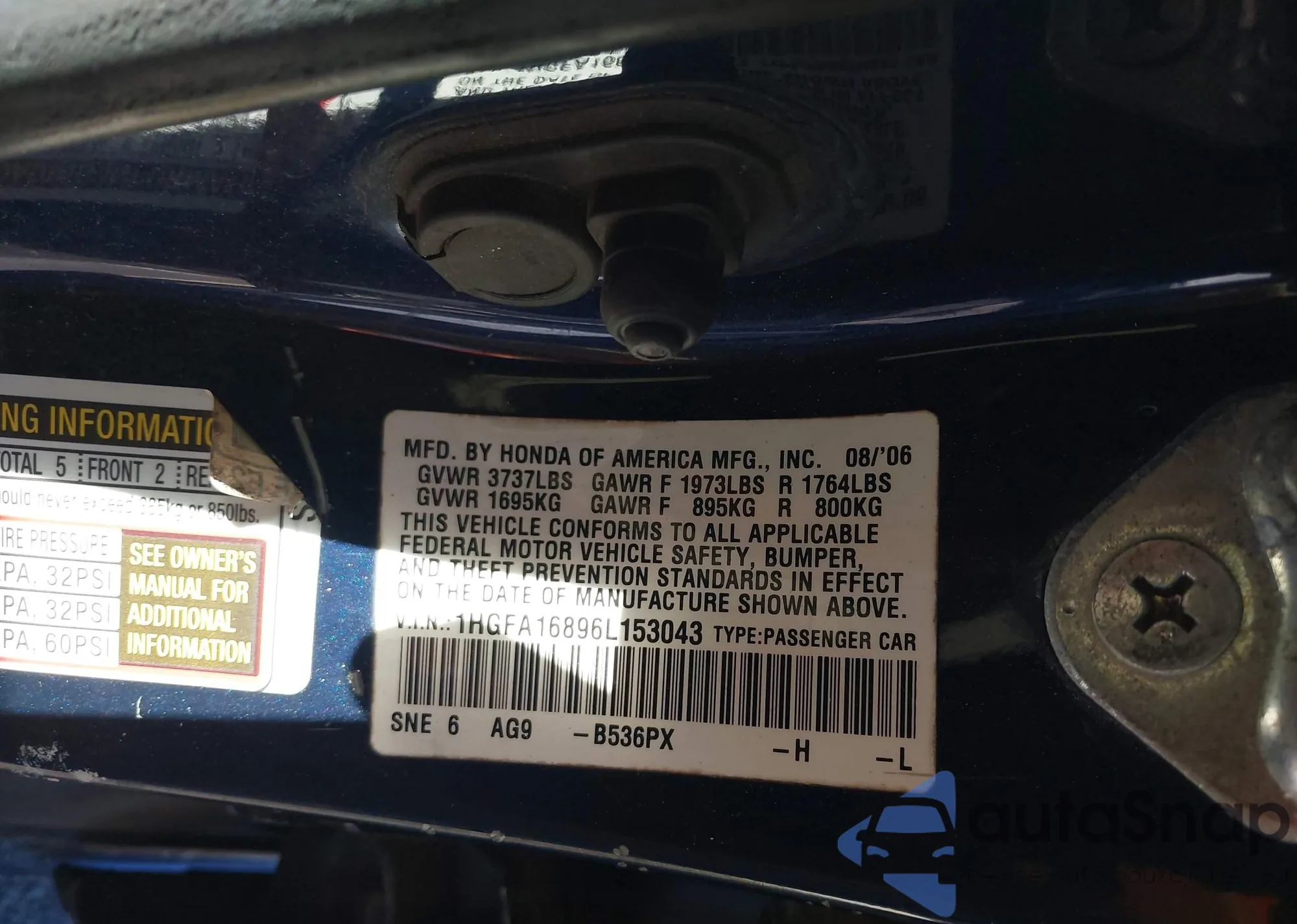 LOT: 43332254 VIN: SHSRD78835U328805