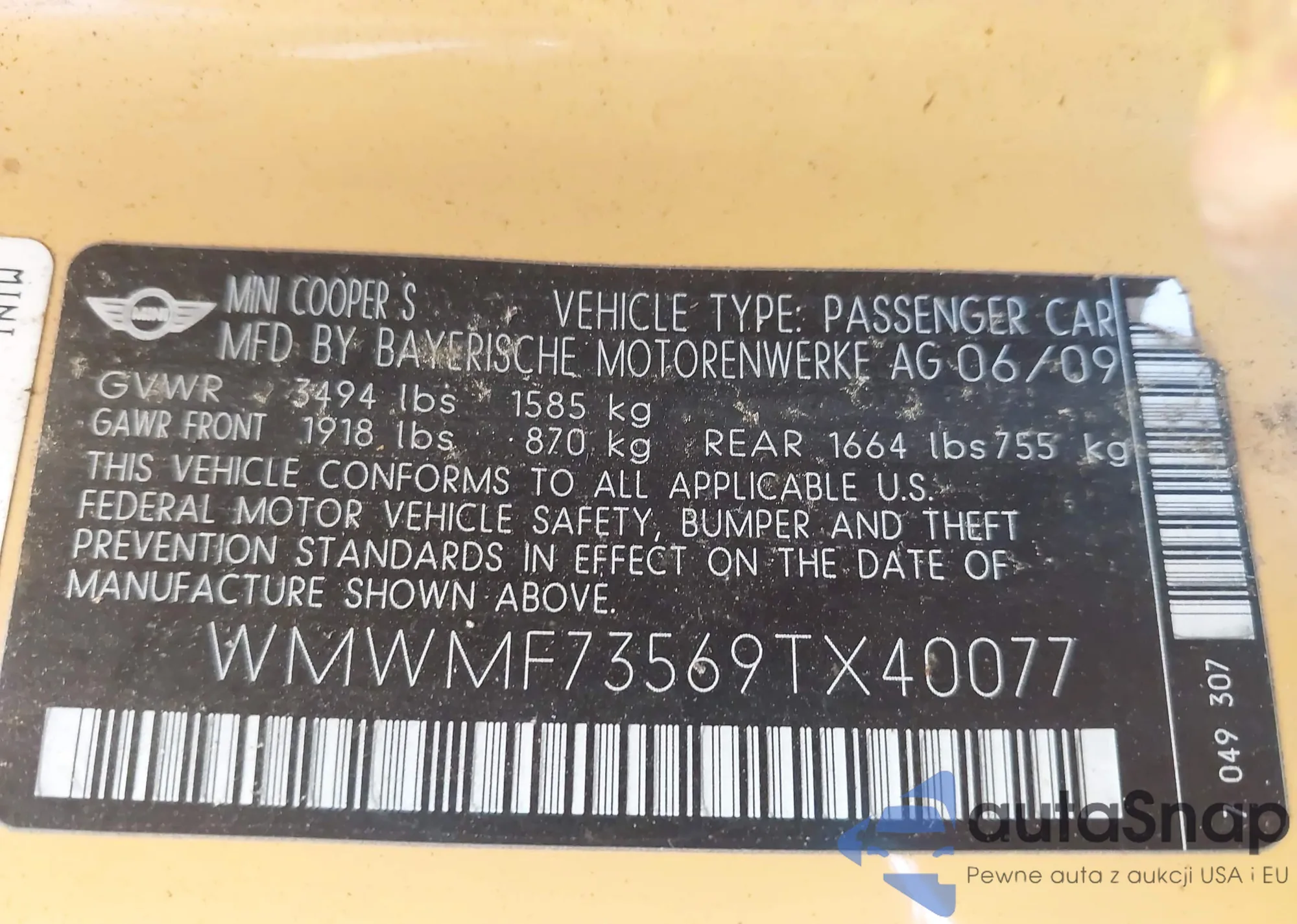 LOT: 43317542 VIN: WMWMF73569TX40077