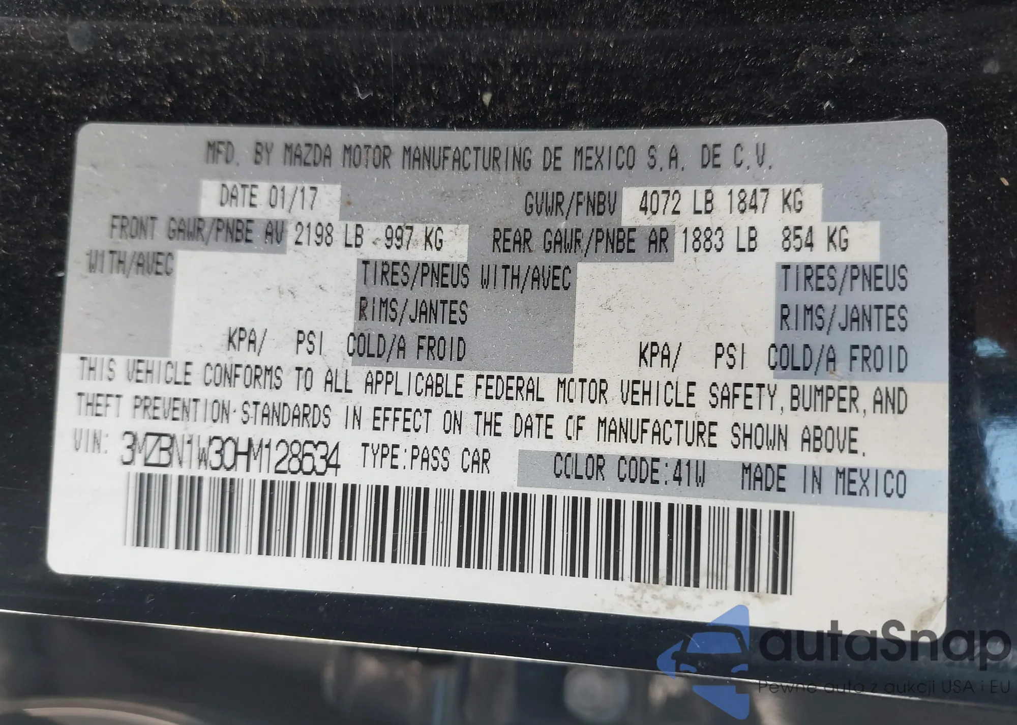 LOT: 43245216 VIN: 3MZBN1W30HM128634