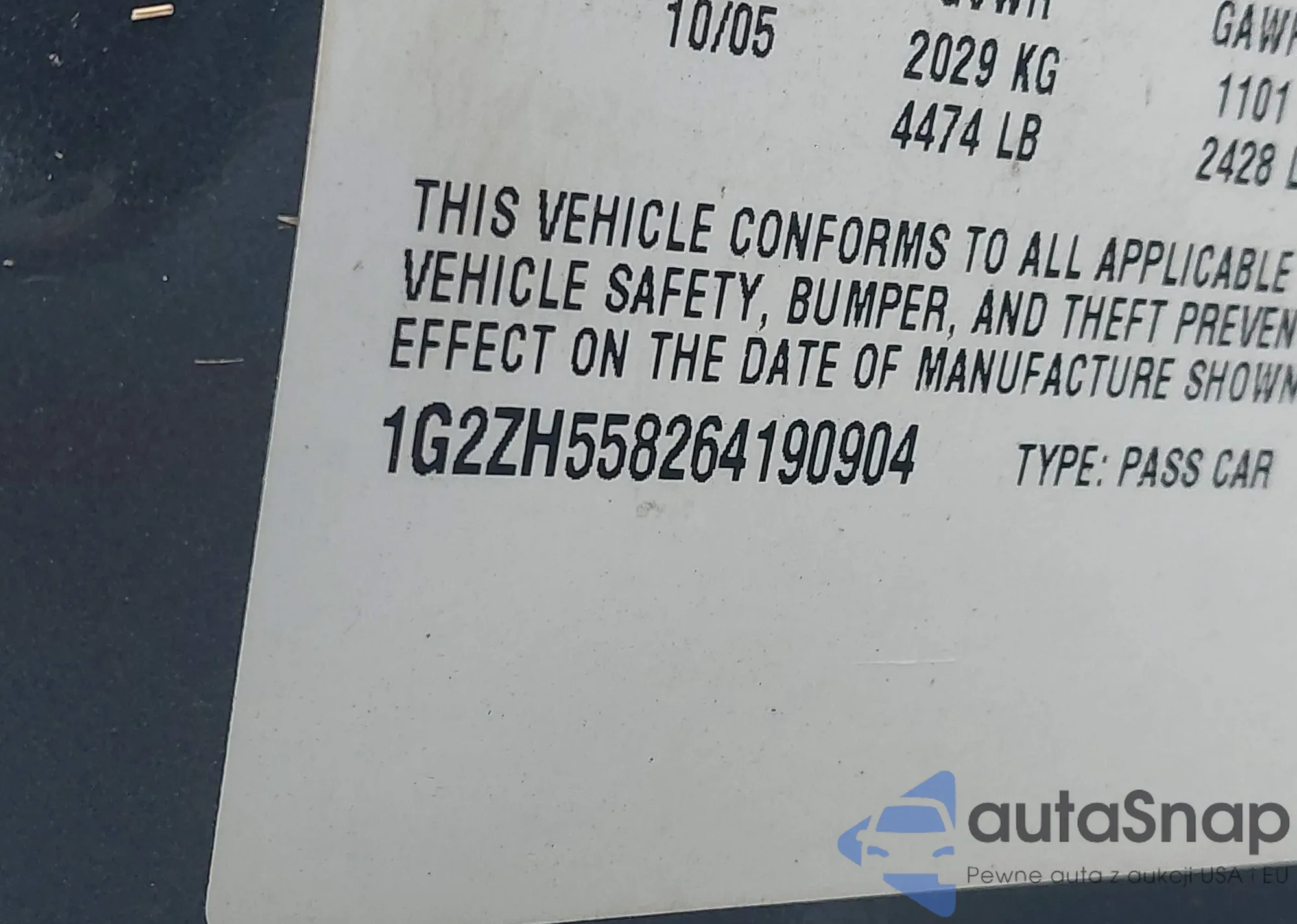 LOT: 43347545 VIN: 1G2ZH558264190904