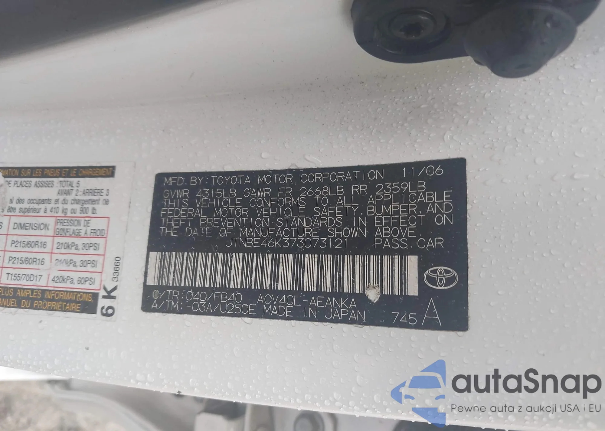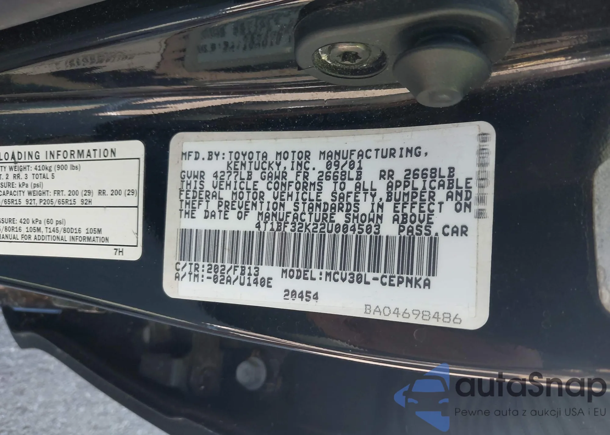 LOT: 43355508 VIN: 4T1BF32K22U004503