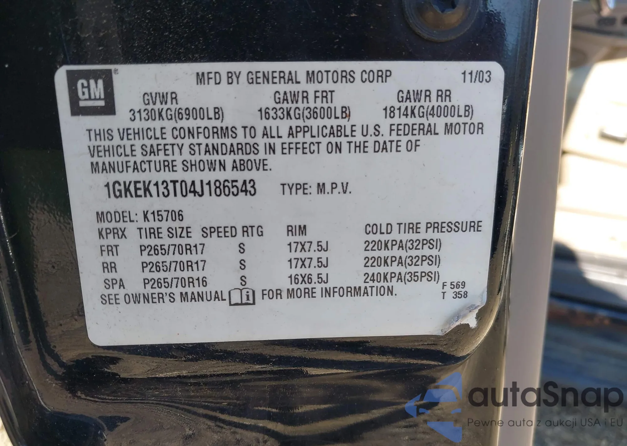 • VIN 1GKEK13T04J186543
