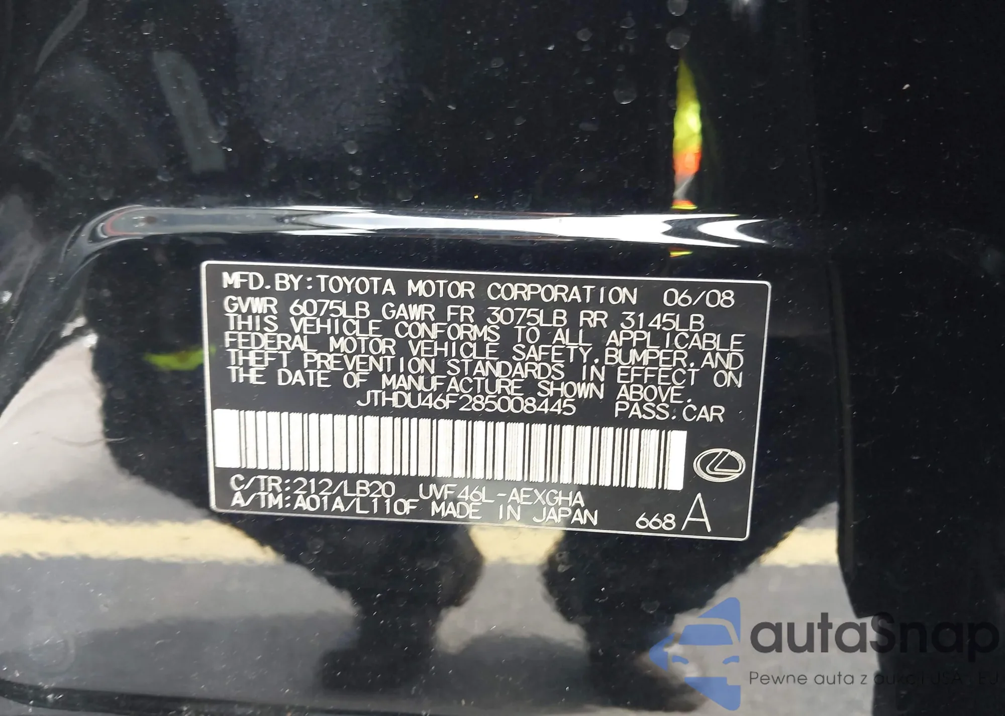LOT: 43278635 VIN: JTDJT923475094484