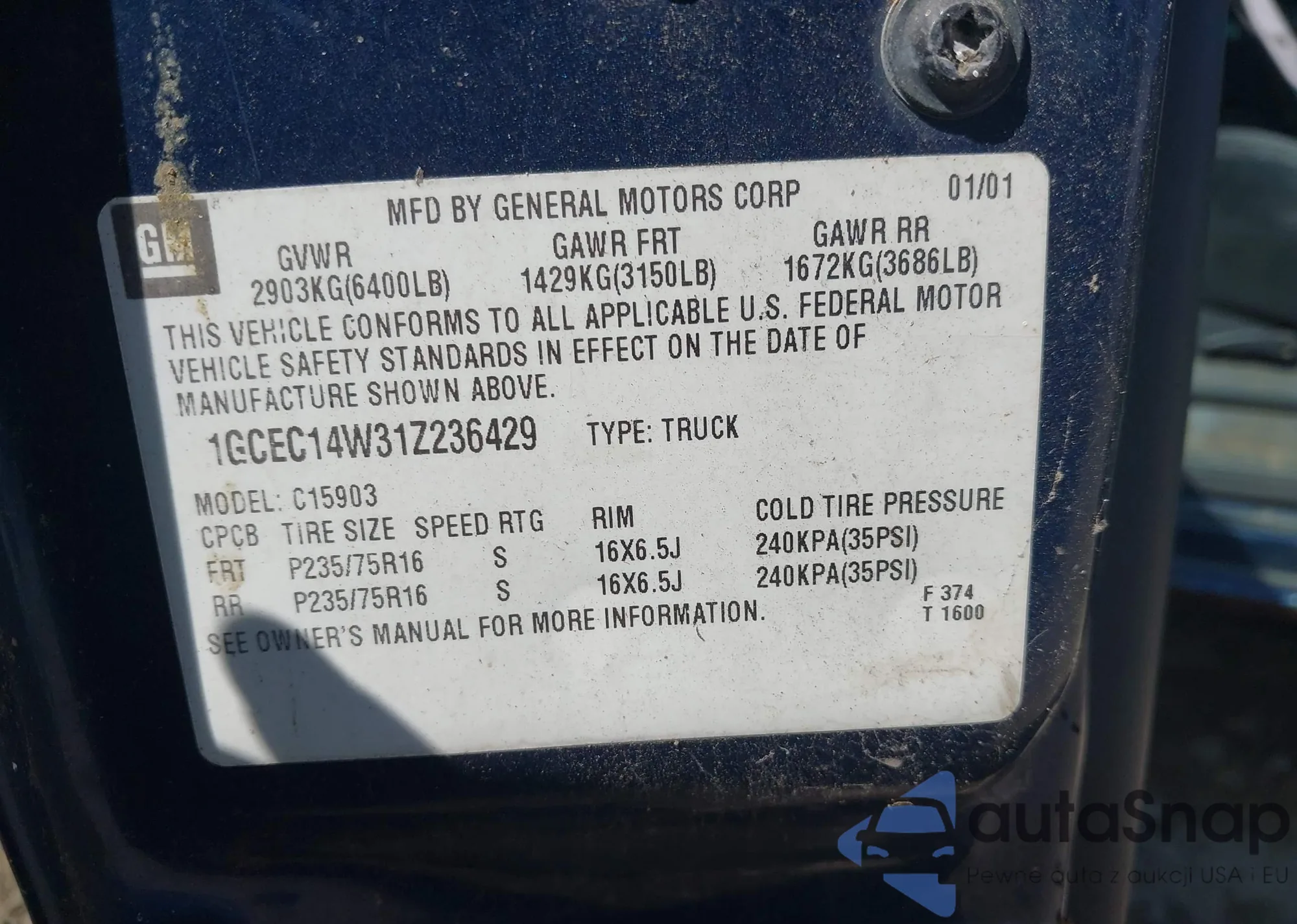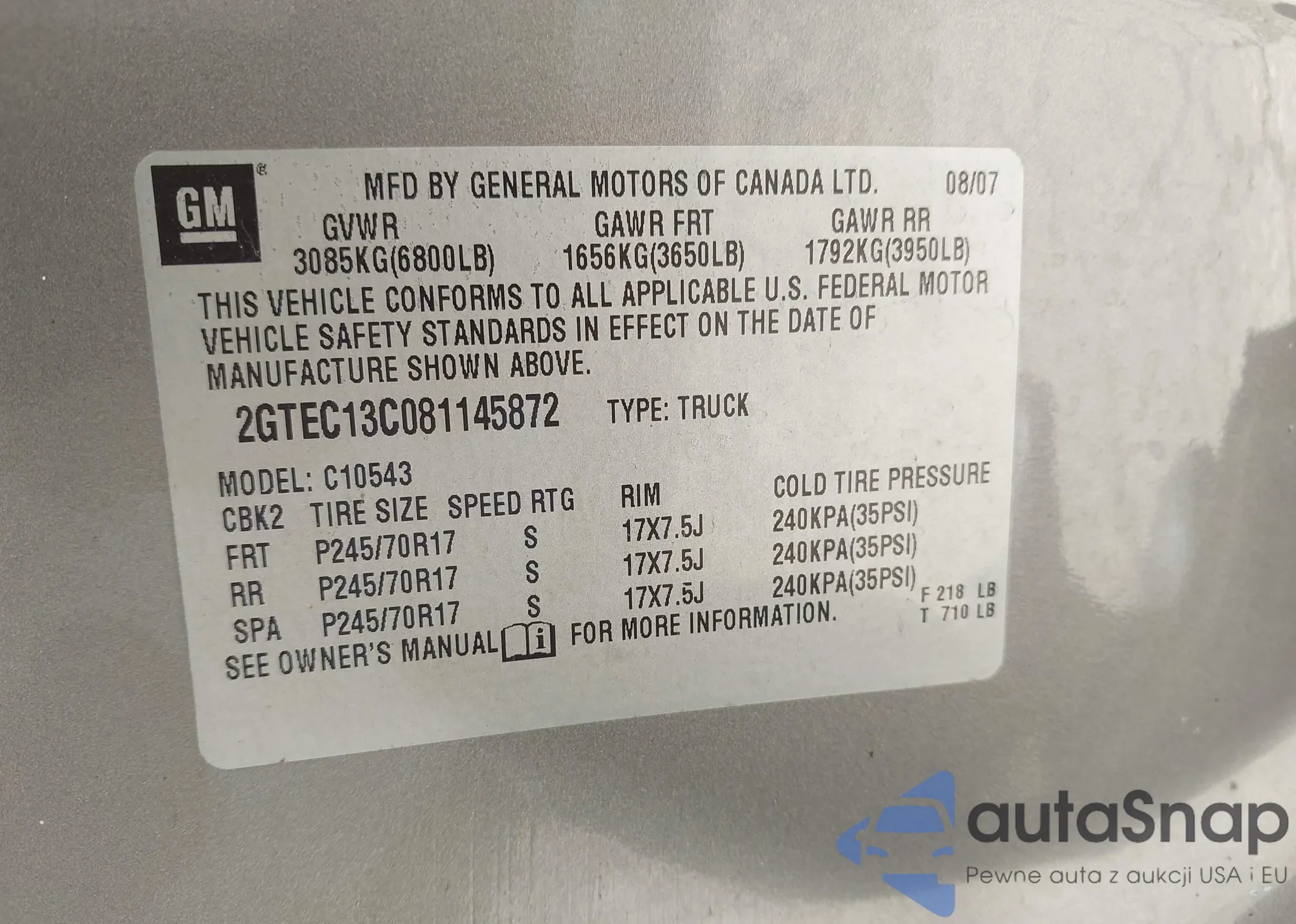 • VIN 2GTEC13C081145872