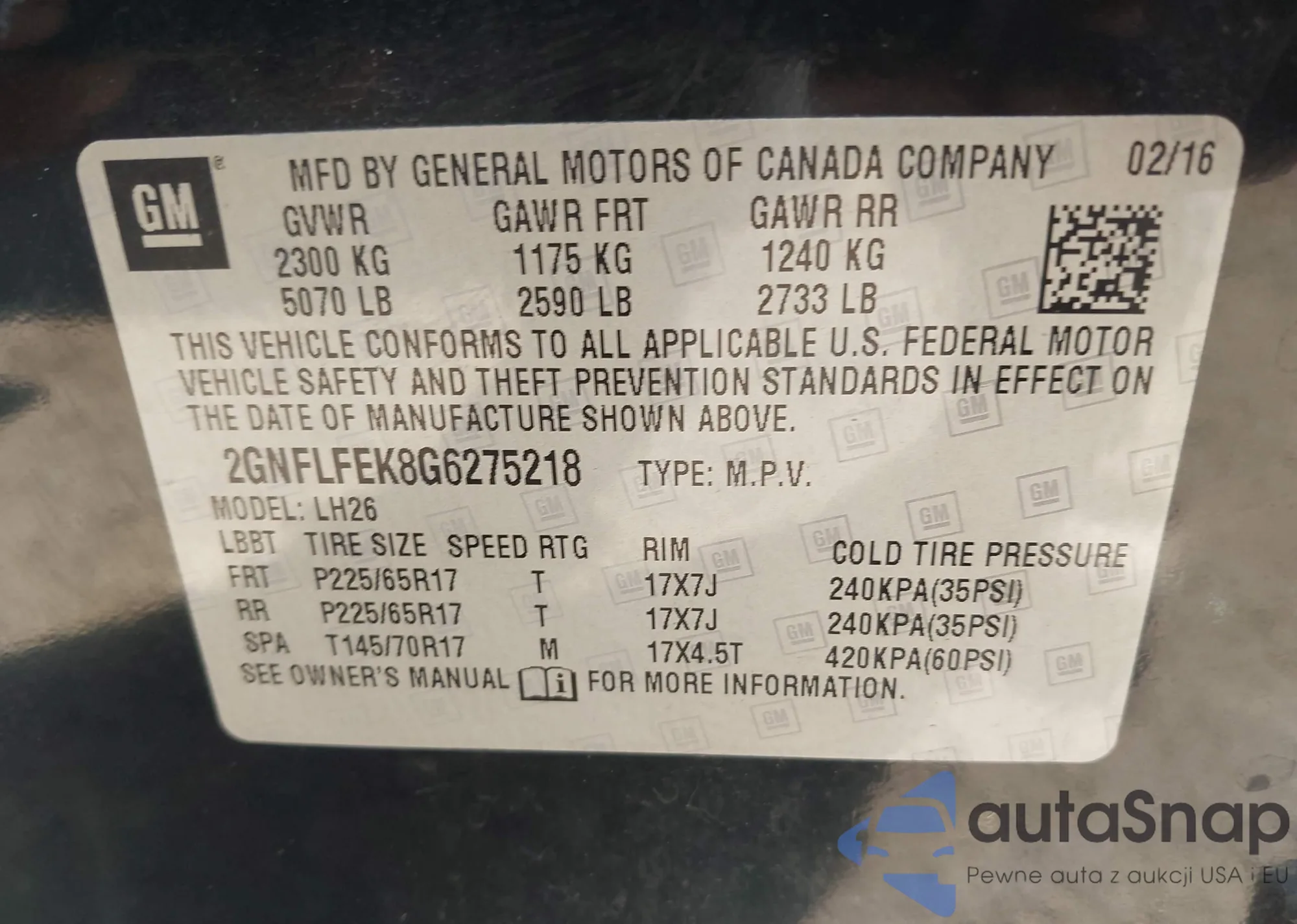 LOT: 43229973 VIN: 2GTEC13C081145872