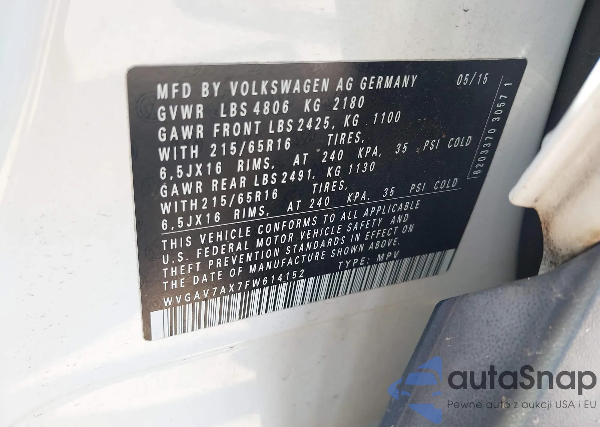 • VIN WVGAV7AX7FW614152