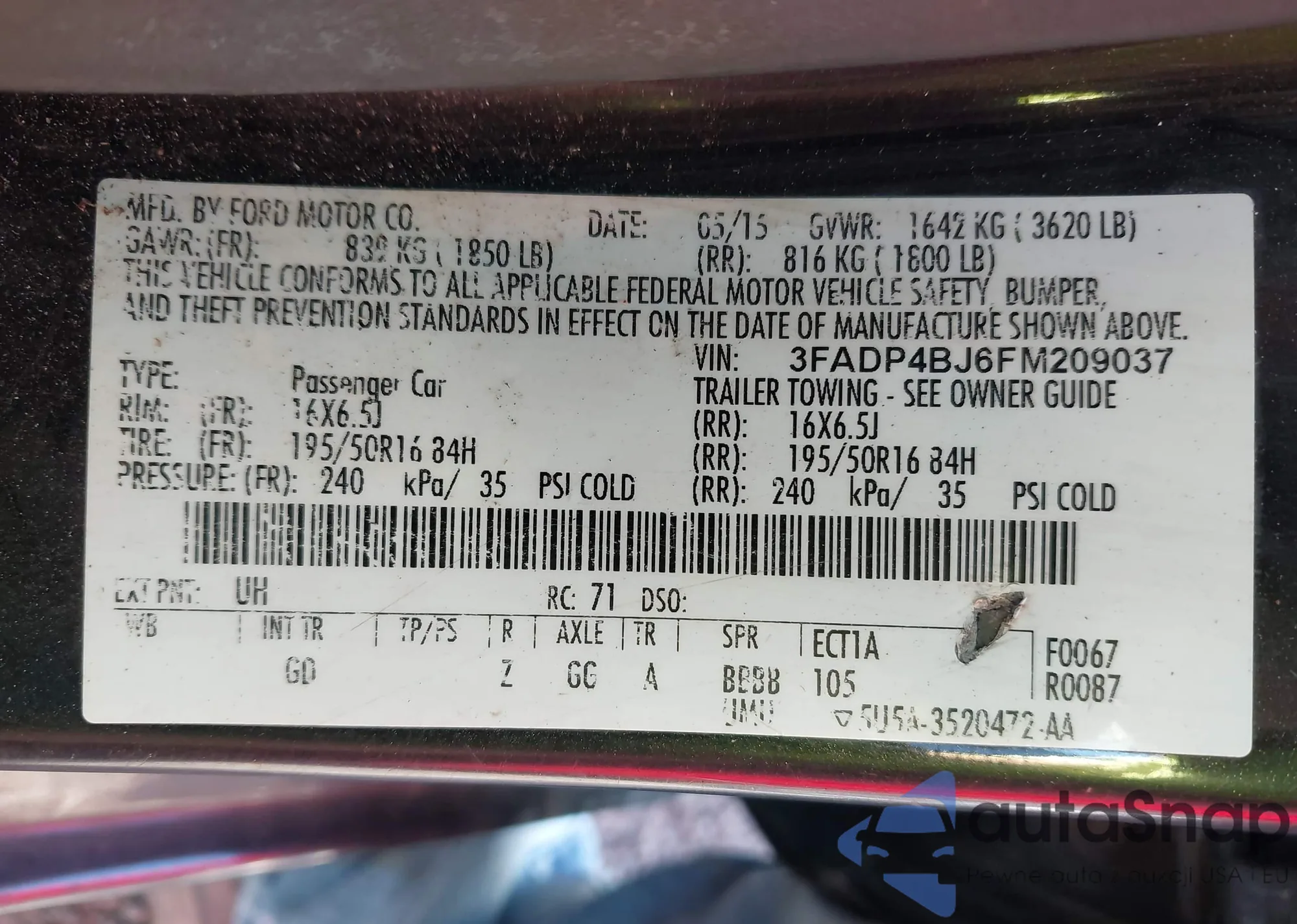 • VIN 1G11A5SL8EF186776