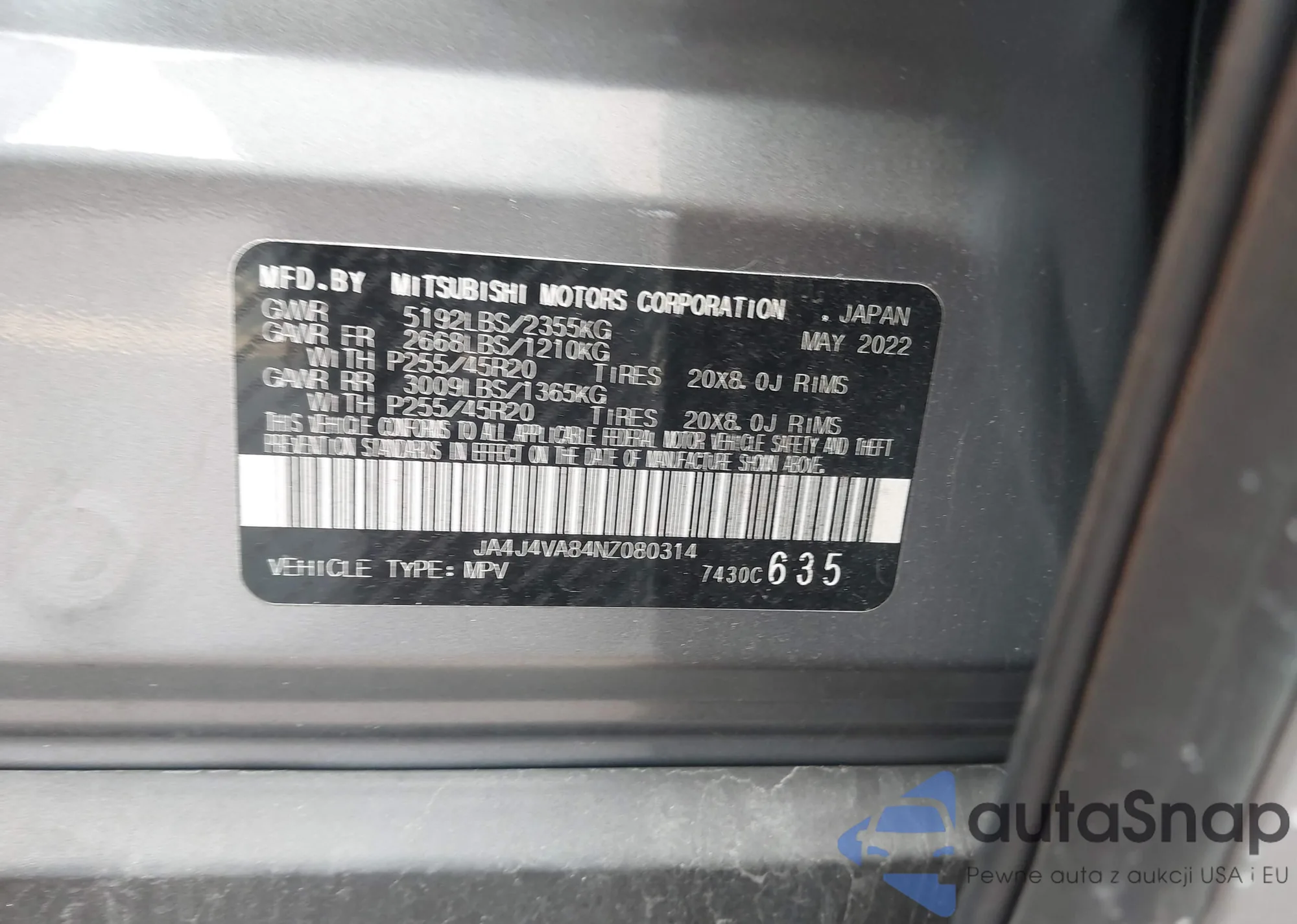 • VIN JA4J4VA84NZ080314