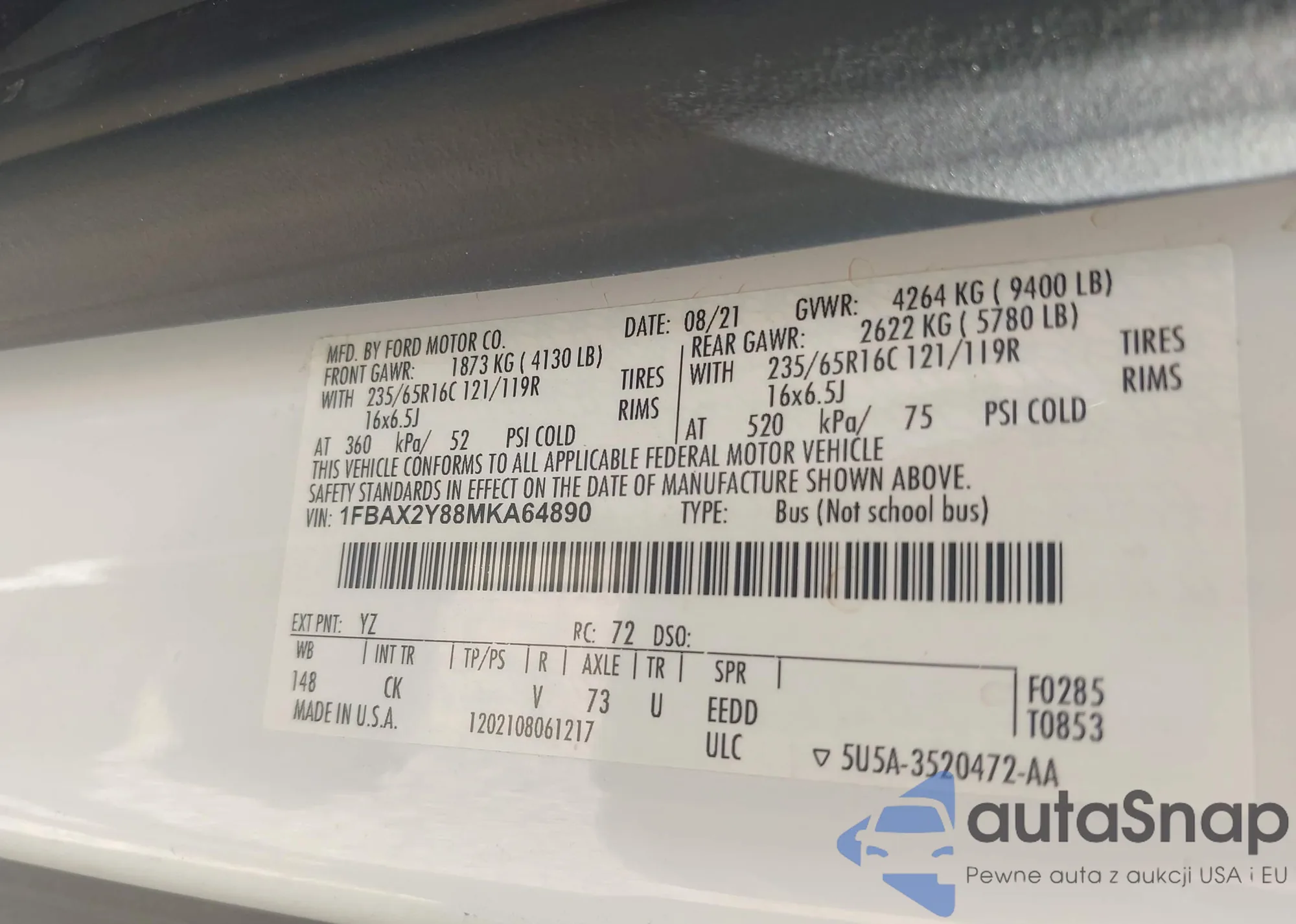 LOT: 43093488 VIN: 1FAFP42X54F210951