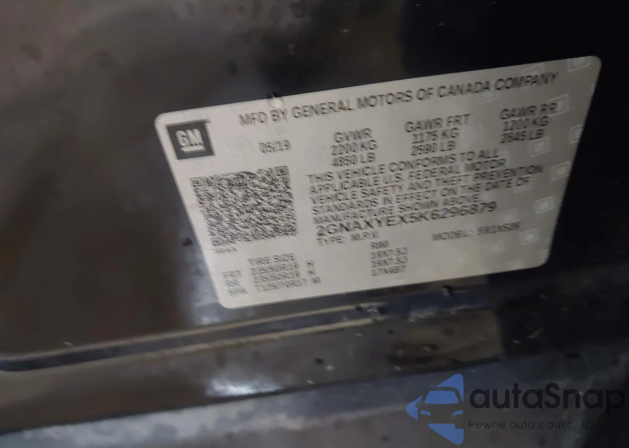 • VIN 2GNAXYEX5K6296879