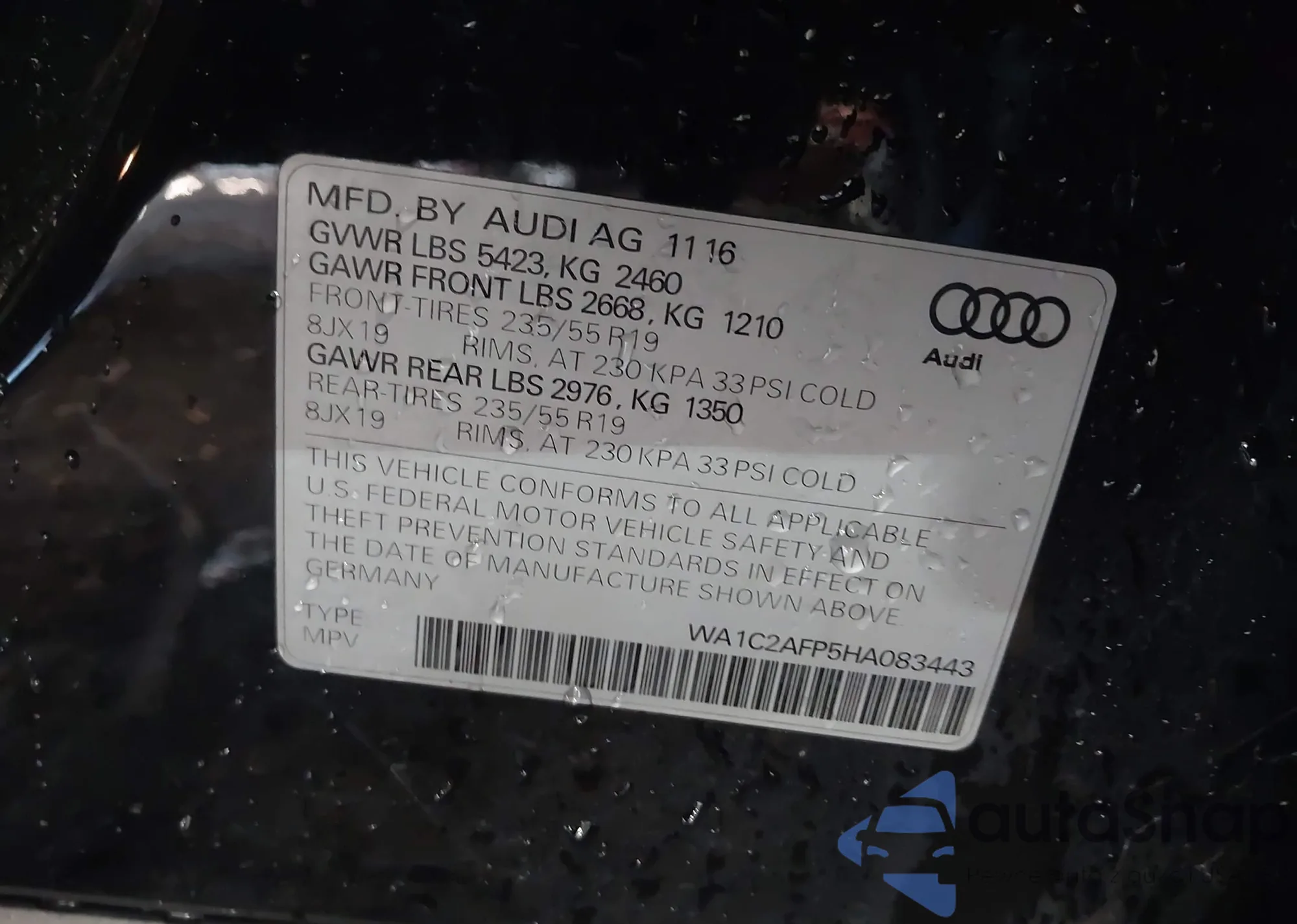 LOT: 43280340 VIN: 5NPEB4AC4BH292466