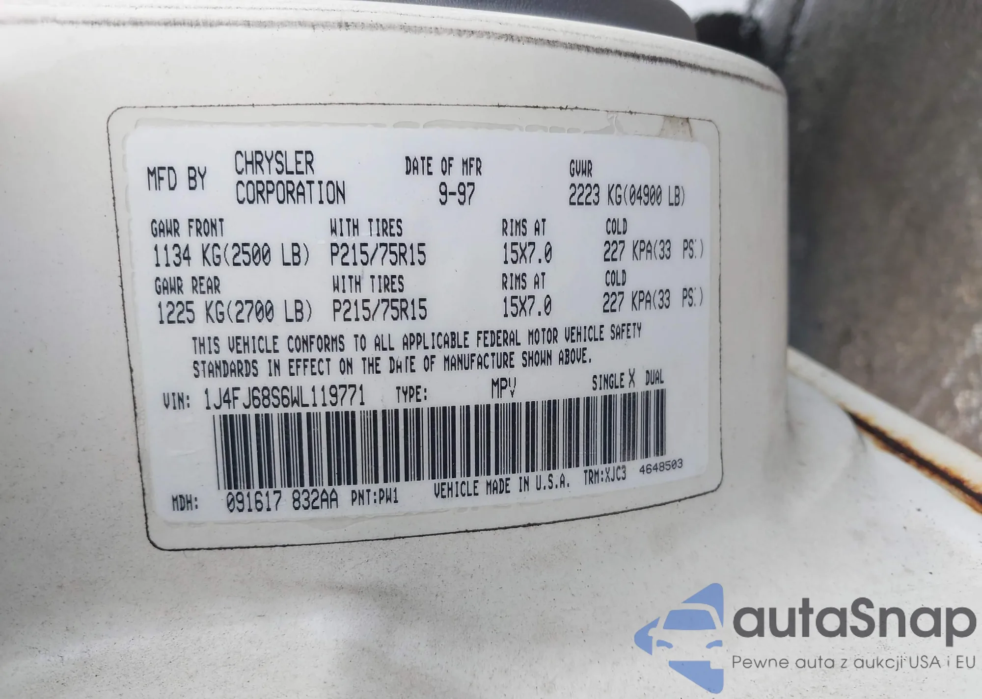 • VIN 1J4FJ68S6WL119771