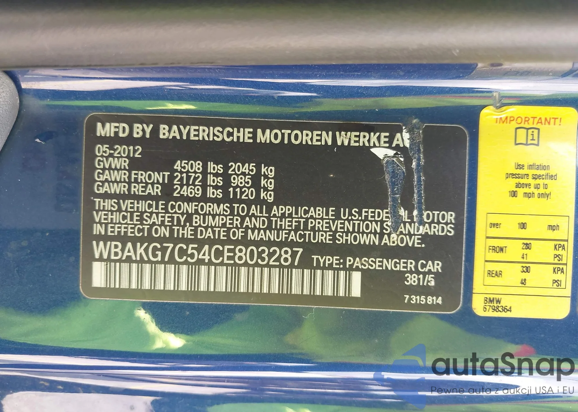 LOT: 43209203 VIN: WBAKG7C54CE803287