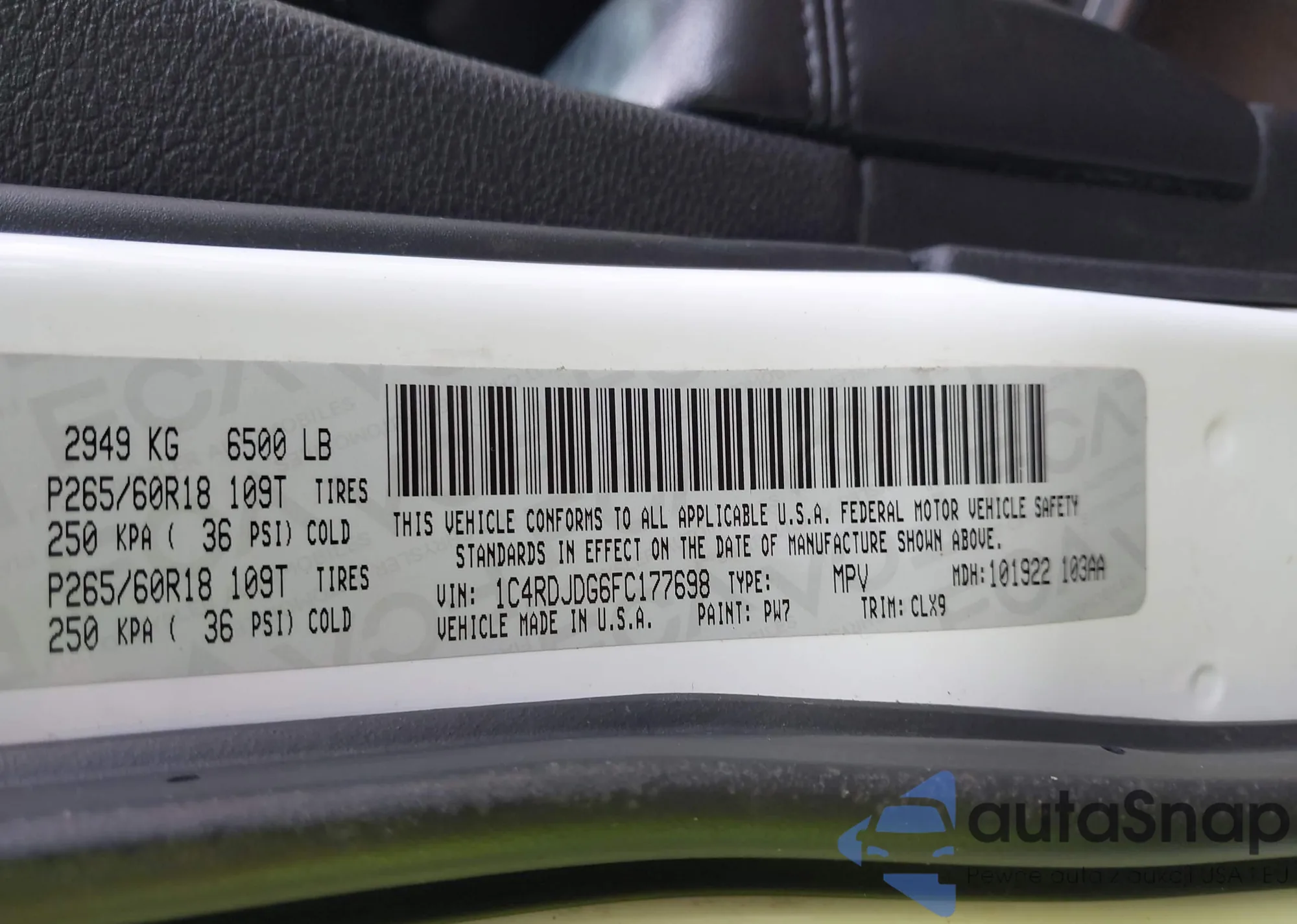 • VIN 1C4RDJDG6FC177698