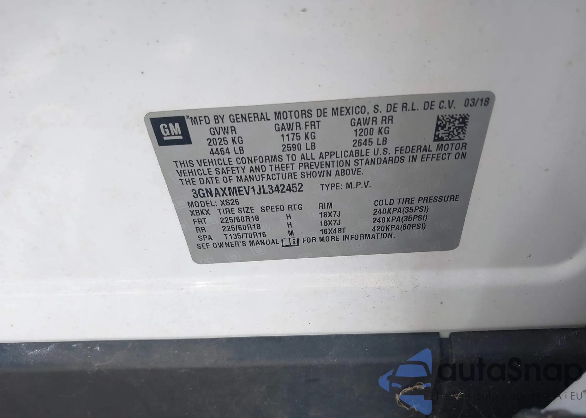 LOT: 42546443 VIN: 3N1AB8BV2RY304541