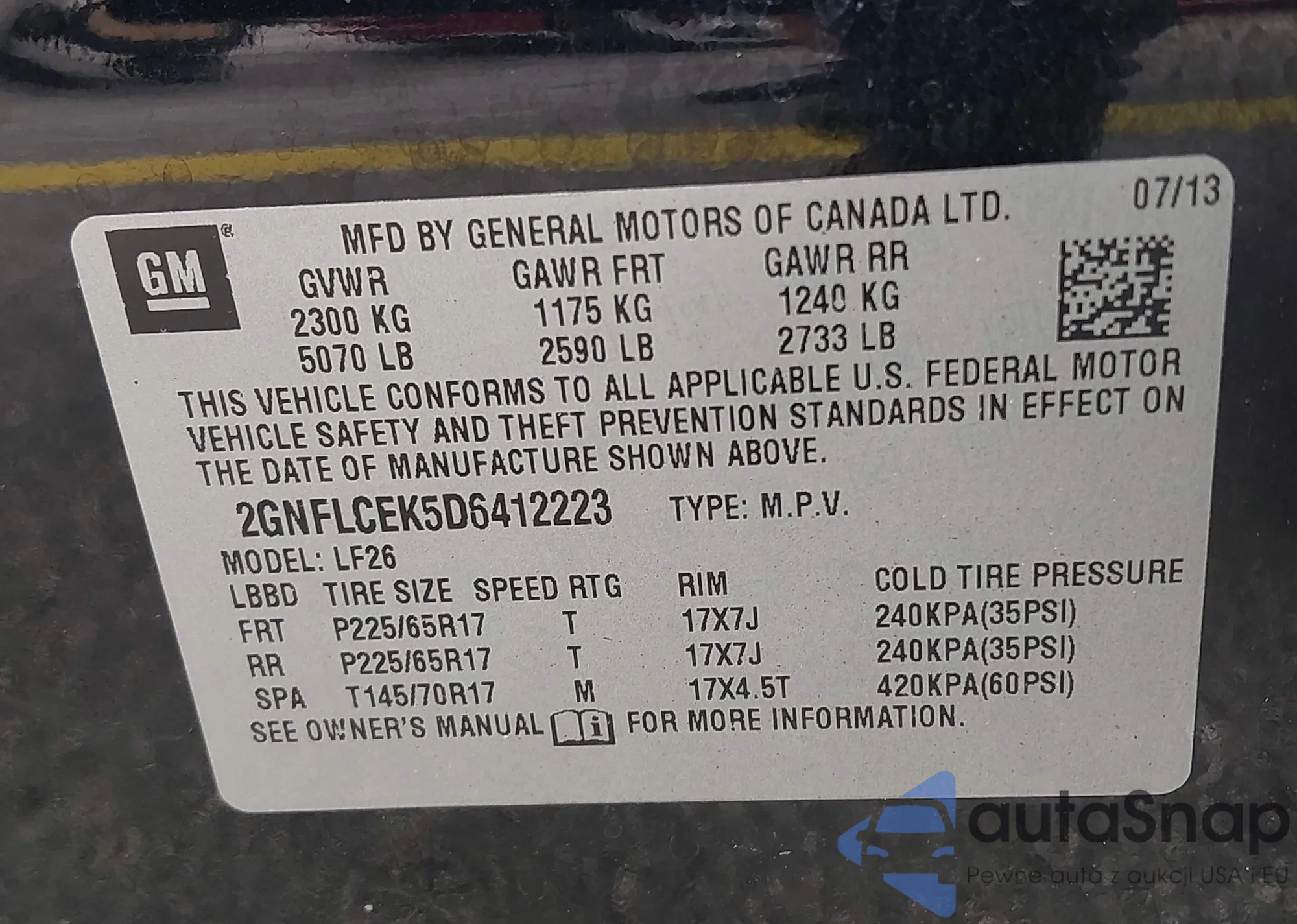 • VIN 2GNFLCEK5D6412223