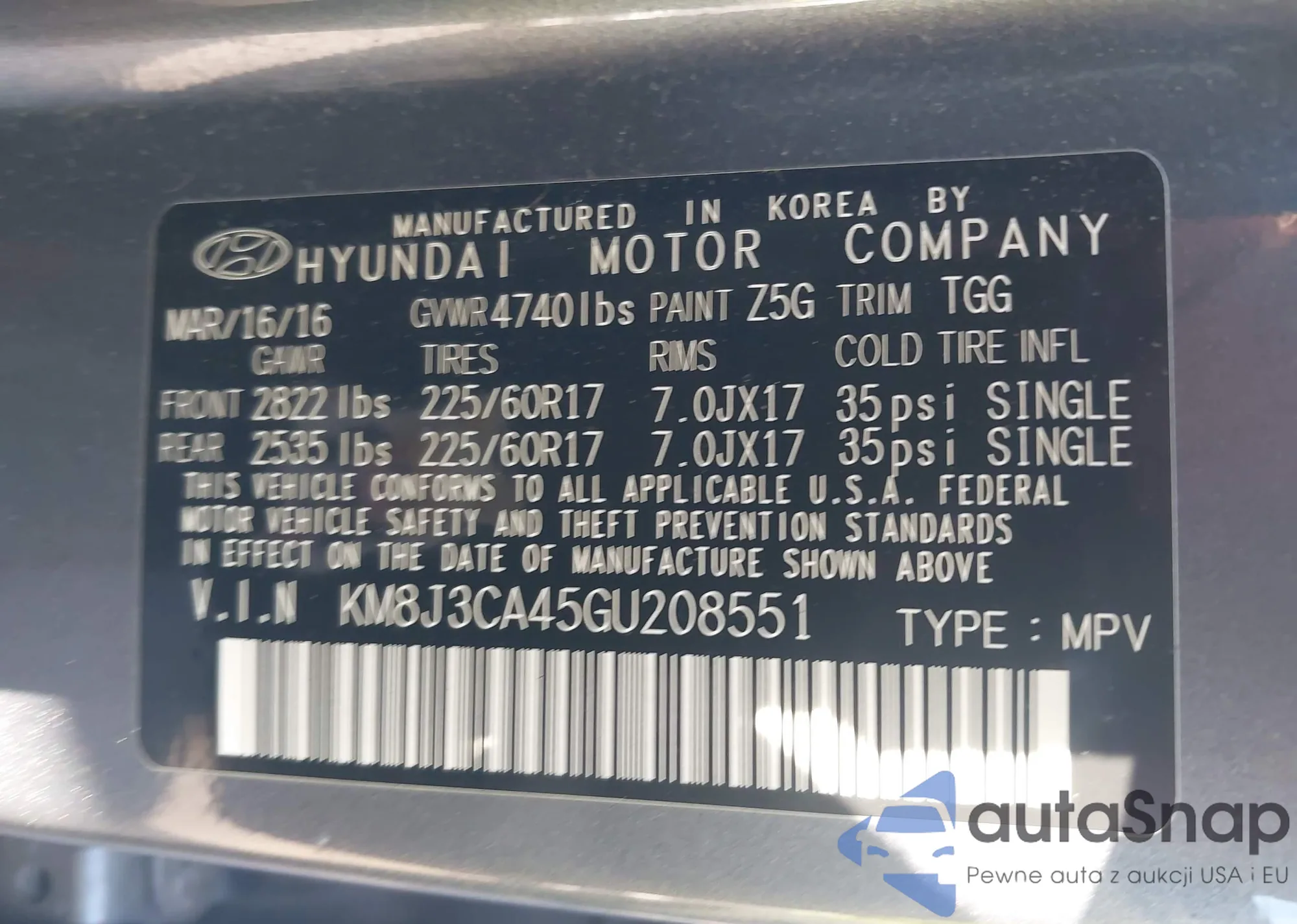 • VIN 5NPEB4AC4BH292466