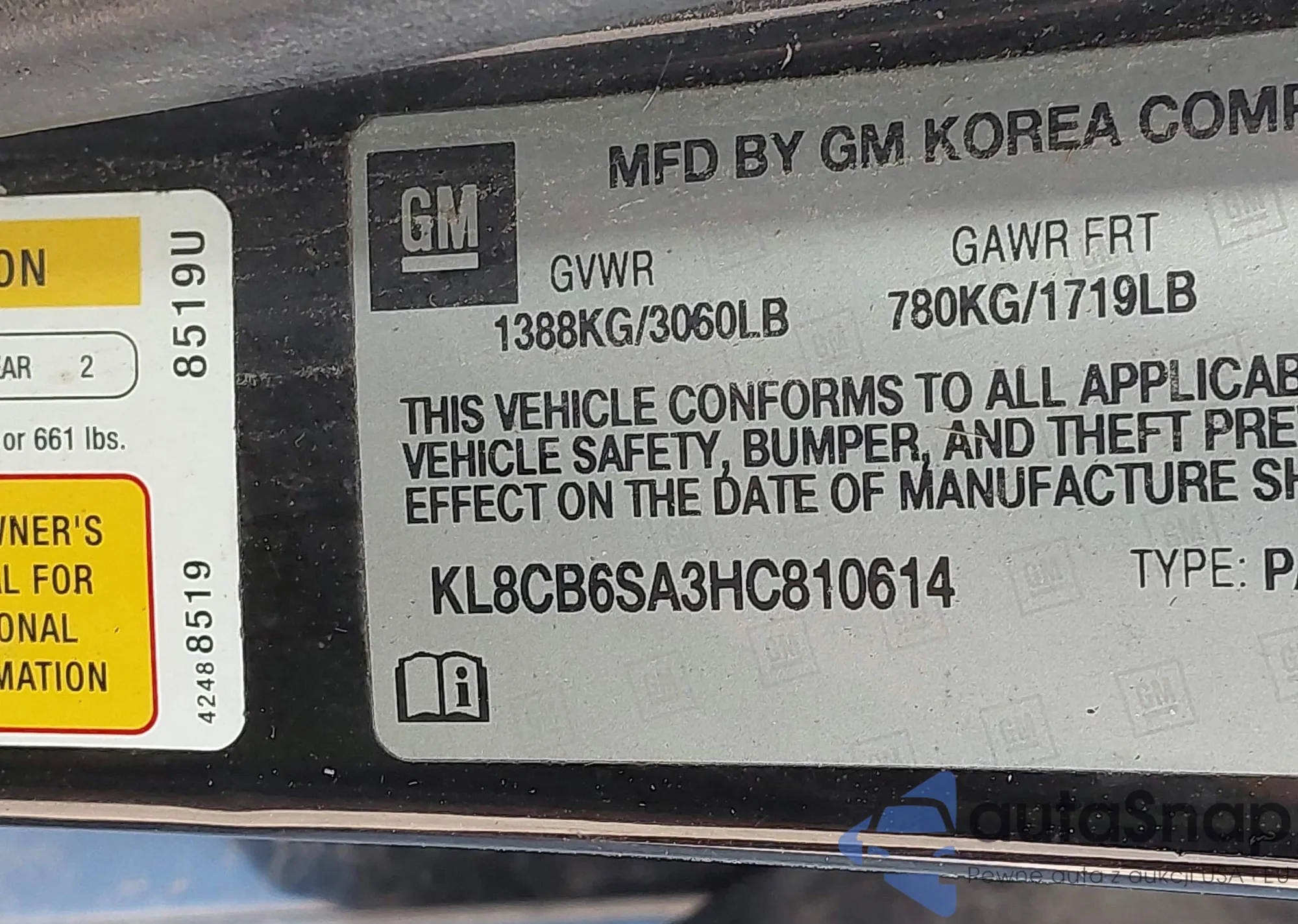 • VIN KL8CB6SA3HC810614