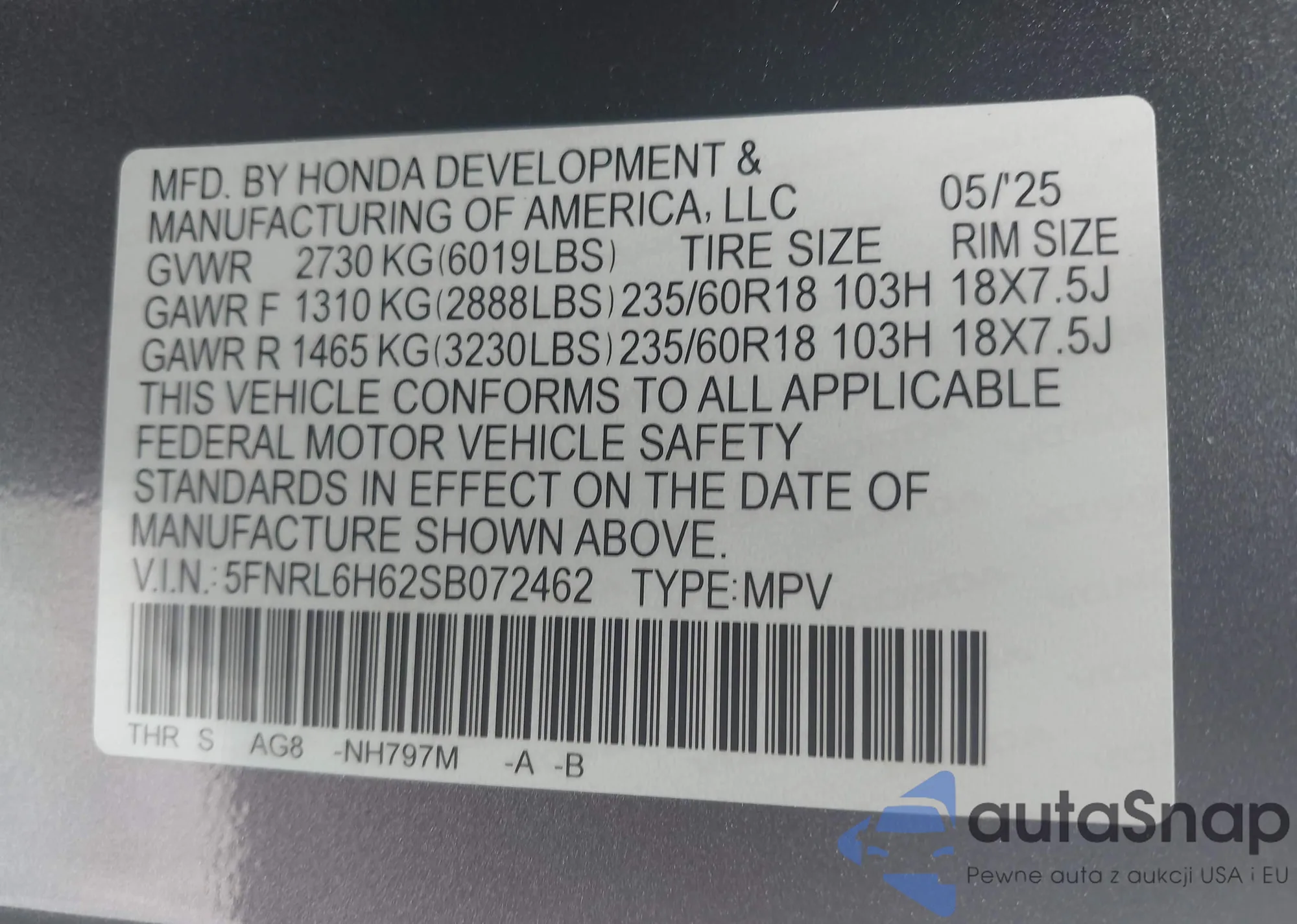 • VIN JHMGK5H72GX042807