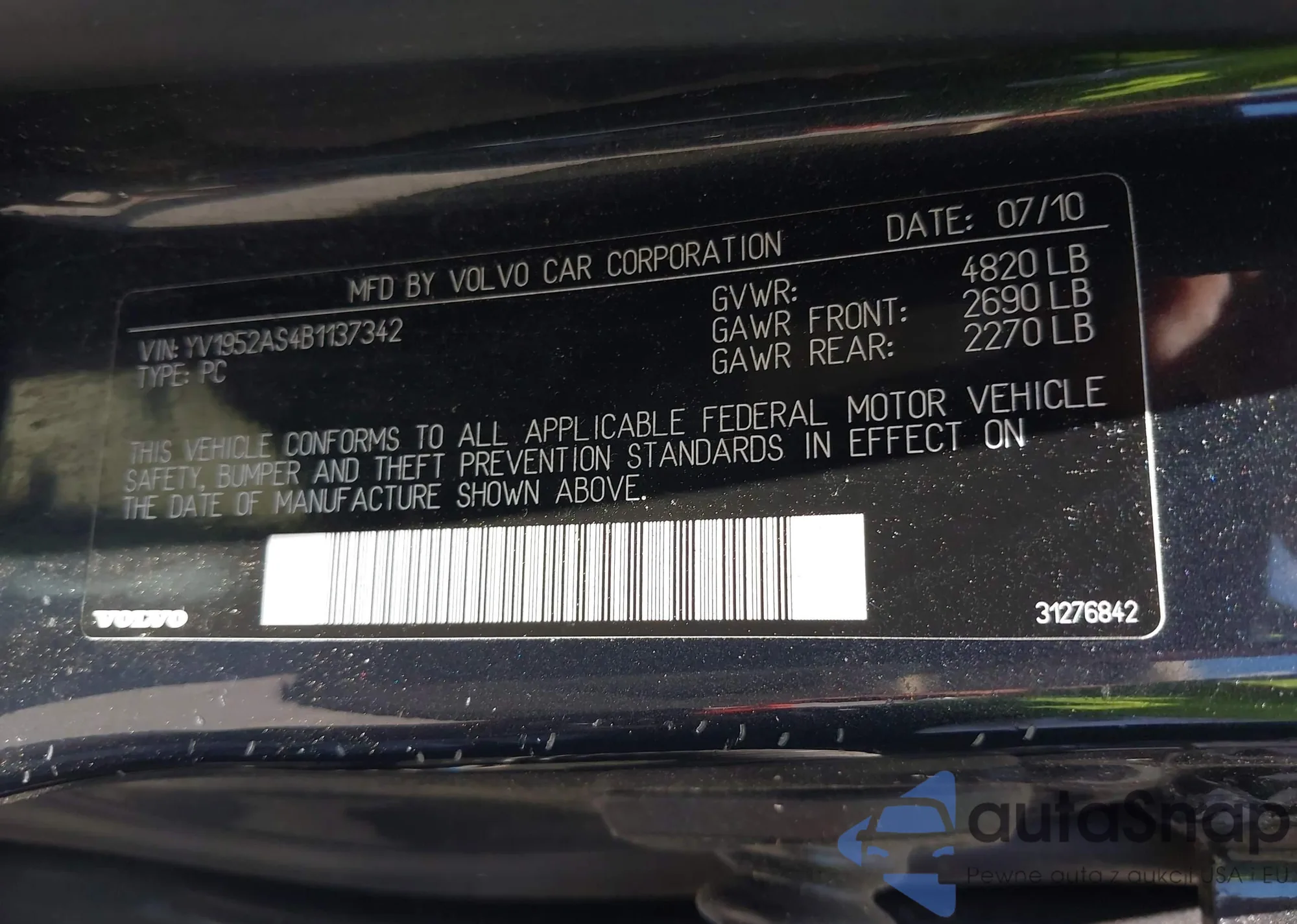 LOT: 42528677 VIN: YV1952AS4B1137342